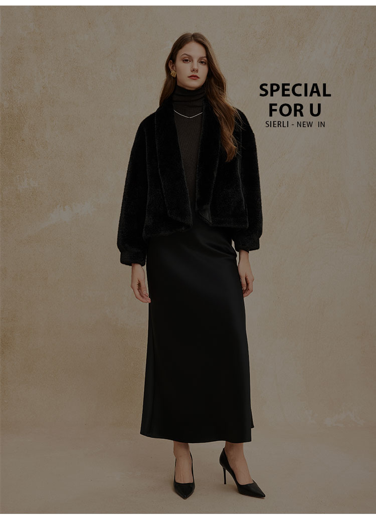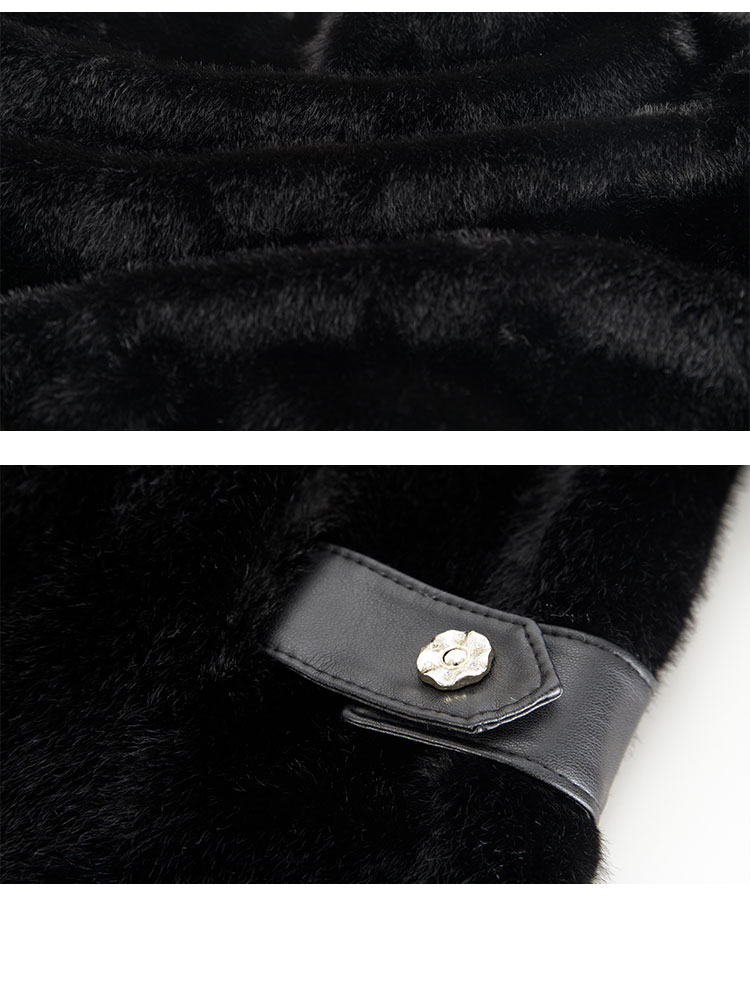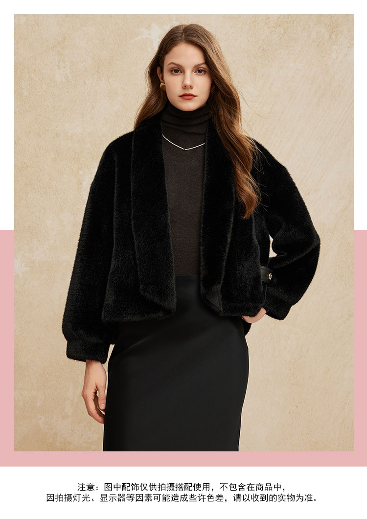 PH100斯尔丽24新款冬季懒人好打理仿短貂毛绒翻领贵族气质皮毛一体外套