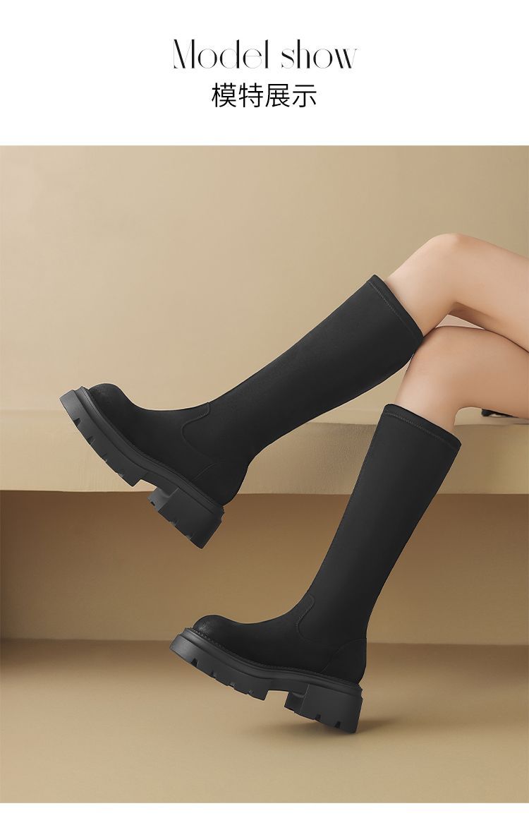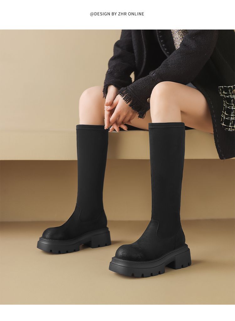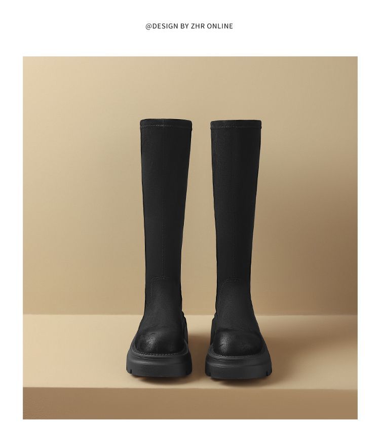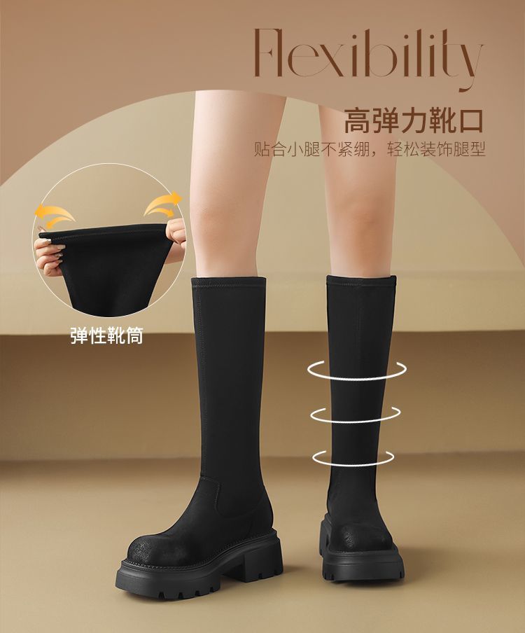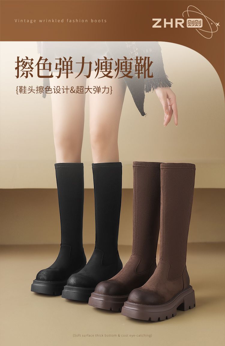 ZHR则则简约纯色弹力瘦瘦靴女靴2024秋冬新款时尚复古百搭骑士靴