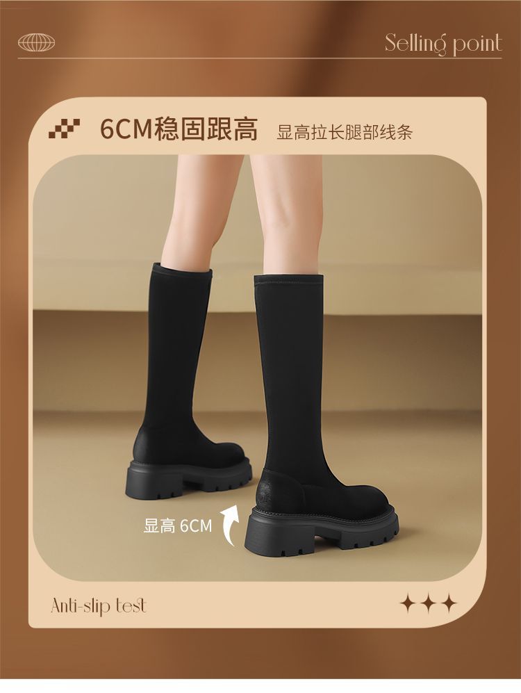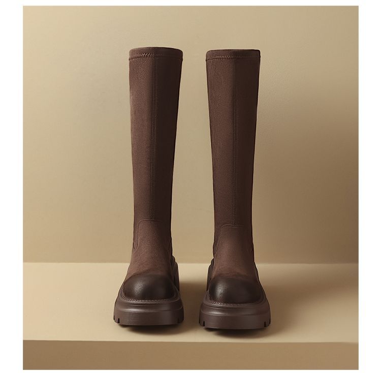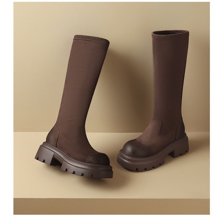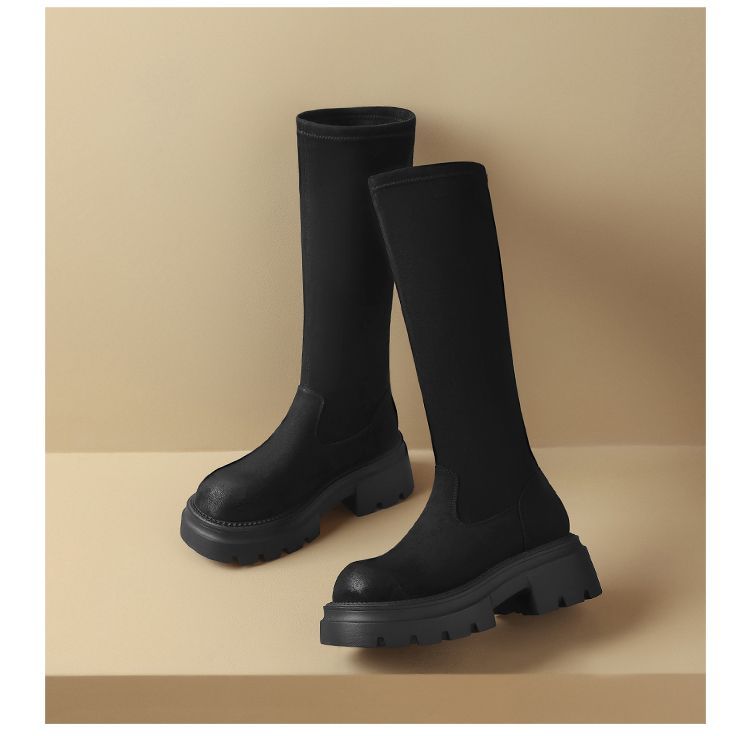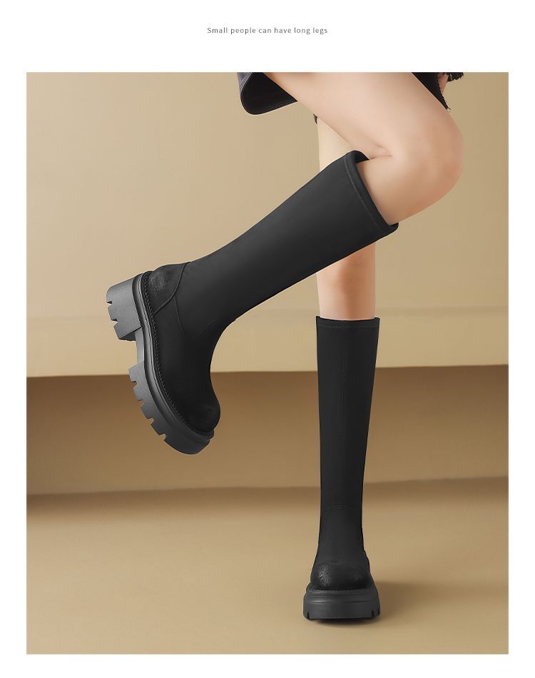 ZHR则则简约纯色弹力瘦瘦靴女靴2024秋冬新款时尚复古百搭骑士靴