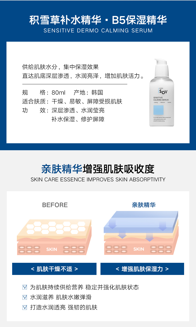 【素瑞施】Sorex ISOV/素瑞施积雪草B5全效保湿精华(改善面部粗糙水润透亮)
