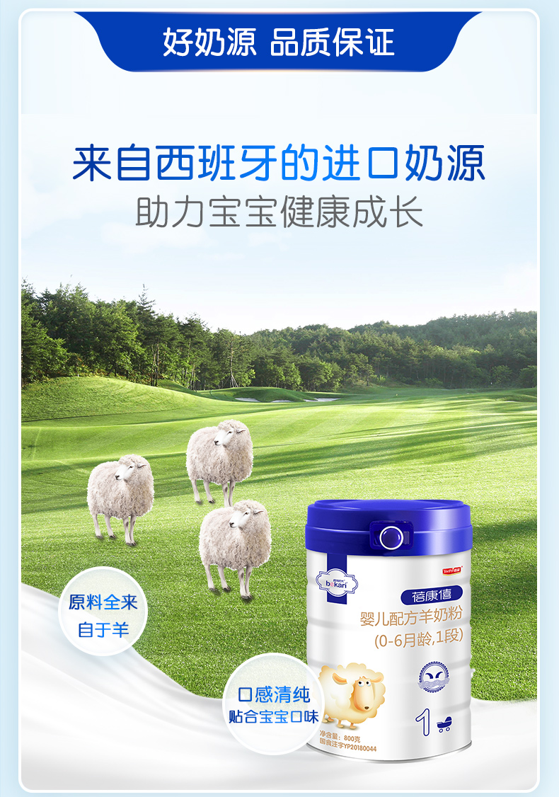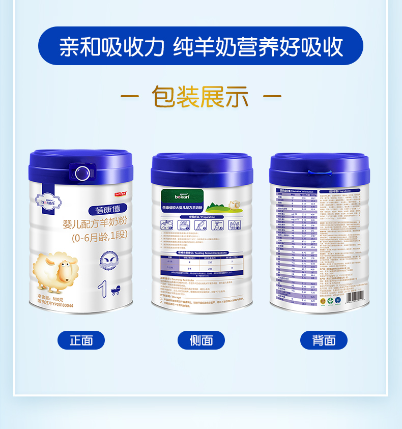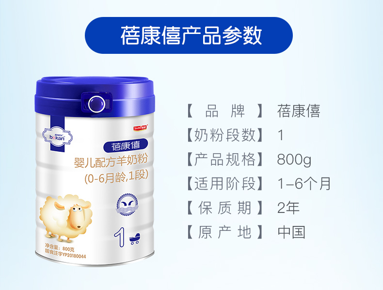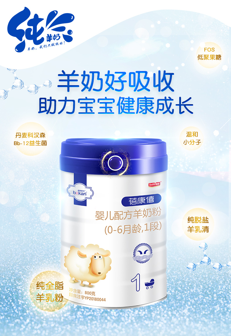 蓓康僖(bekari)纯绵羊奶粉 1段(0-6月适用)婴幼儿羊奶粉 800g*6罐套装【蓓康僖】