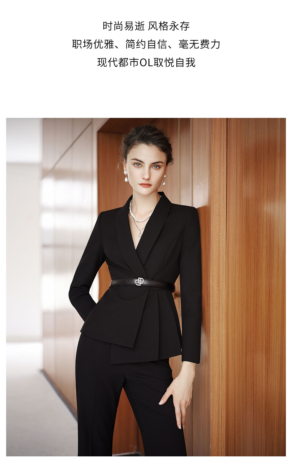 IWY/经典黑色西装阔腿裤套装女气质显瘦两件套商务职业装工作服CP2470