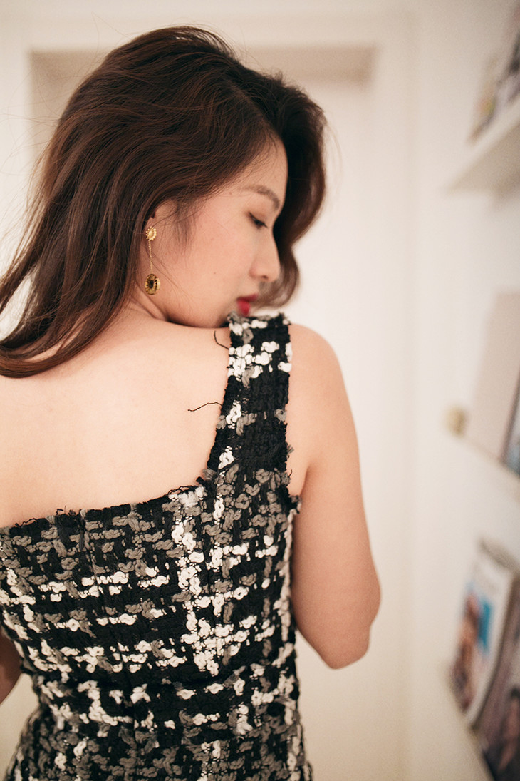 AtelierMissLu / Heidi 黑白粗呢格方领连身裙
