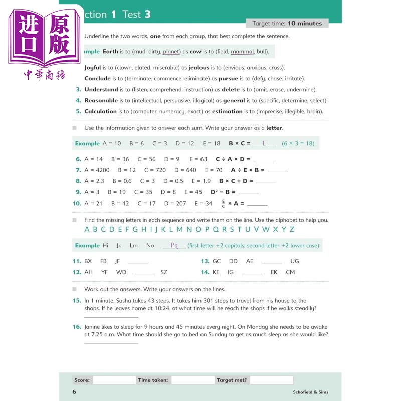 Schofield & Sims 言语推理快速测试 是简短的计时测试,旨在提高速度和流利程度,为 11+ 和其他学校选拔测试做准备。测试由经验丰富的导师编写,涵盖广泛的主题,确保孩子具备在任何主要提供商的测试(包括 CEM 和 GL)中取得成功的技能和知识。