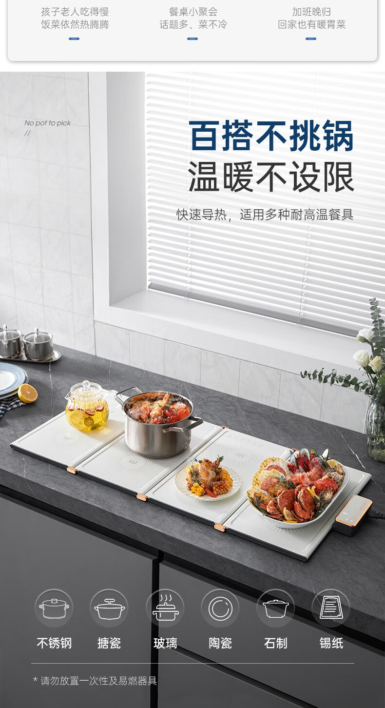 【摩飞 折叠暖菜板】家用多功能智能保温板,寒冬必备,畅享暖意好食光。
