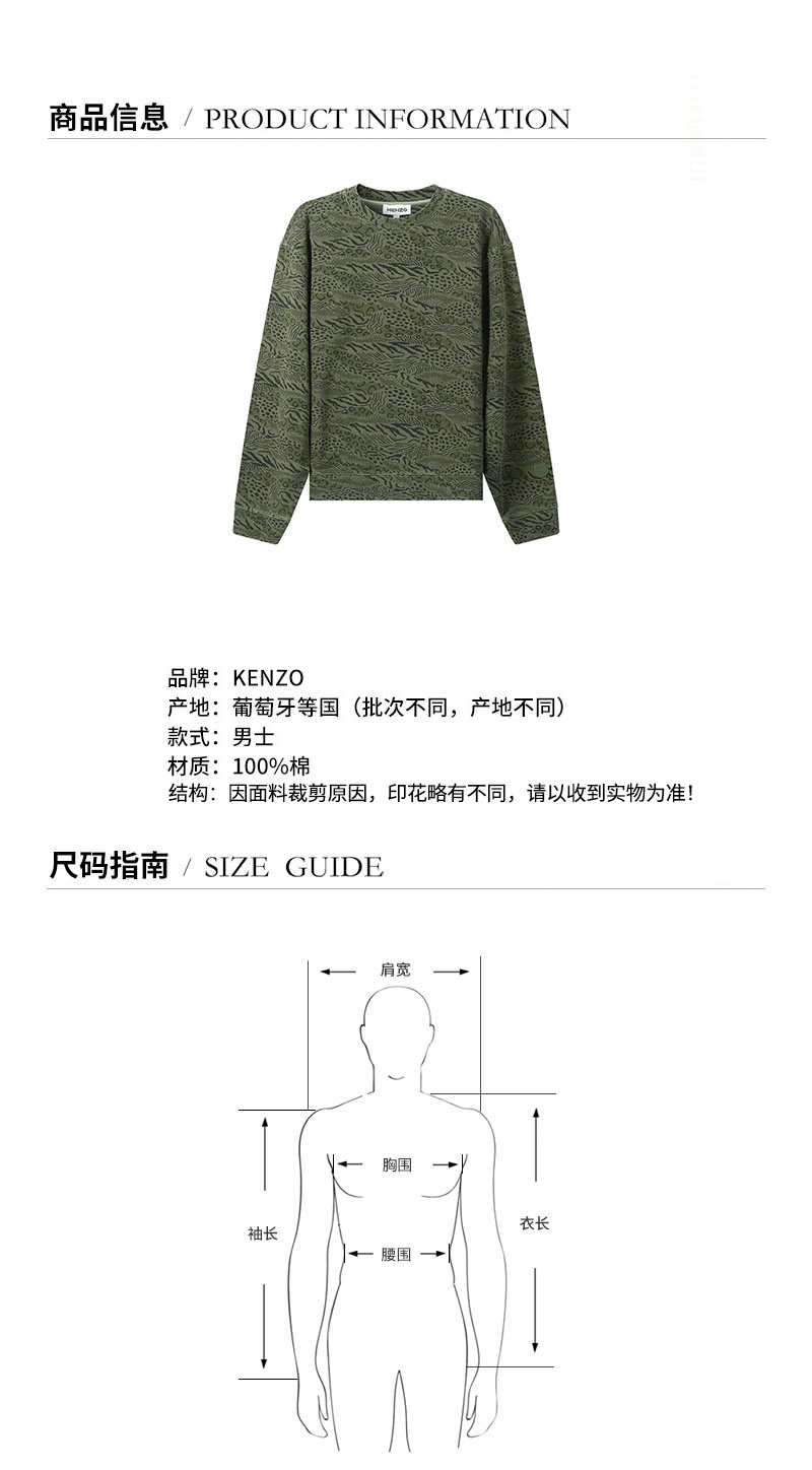 KENZO/高田贤三 男士棉质圆领长袖卫衣运动衫 5SW025 4ML