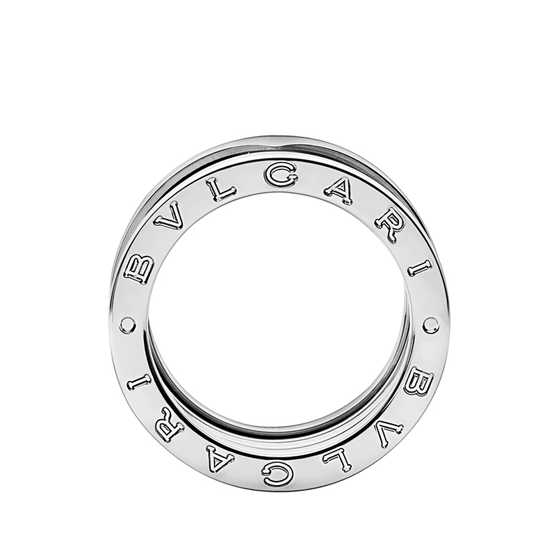 受到圆形剧场罗马斗兽场的启发,B.zero1戒指是宝格丽创意远景的真实象征,重新诠释了珠宝设计的精髓。它的纯正原始螺旋形体现了过去,现在和未来的融合,同时也是该系列开拓精神的象征。18K金白金四排B.zero1戒指。