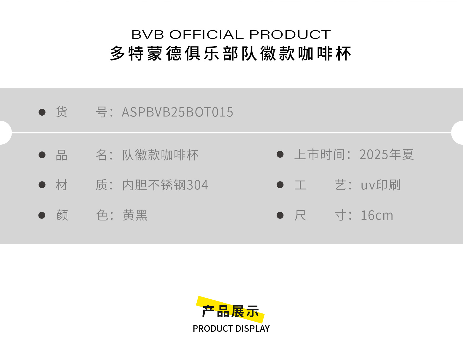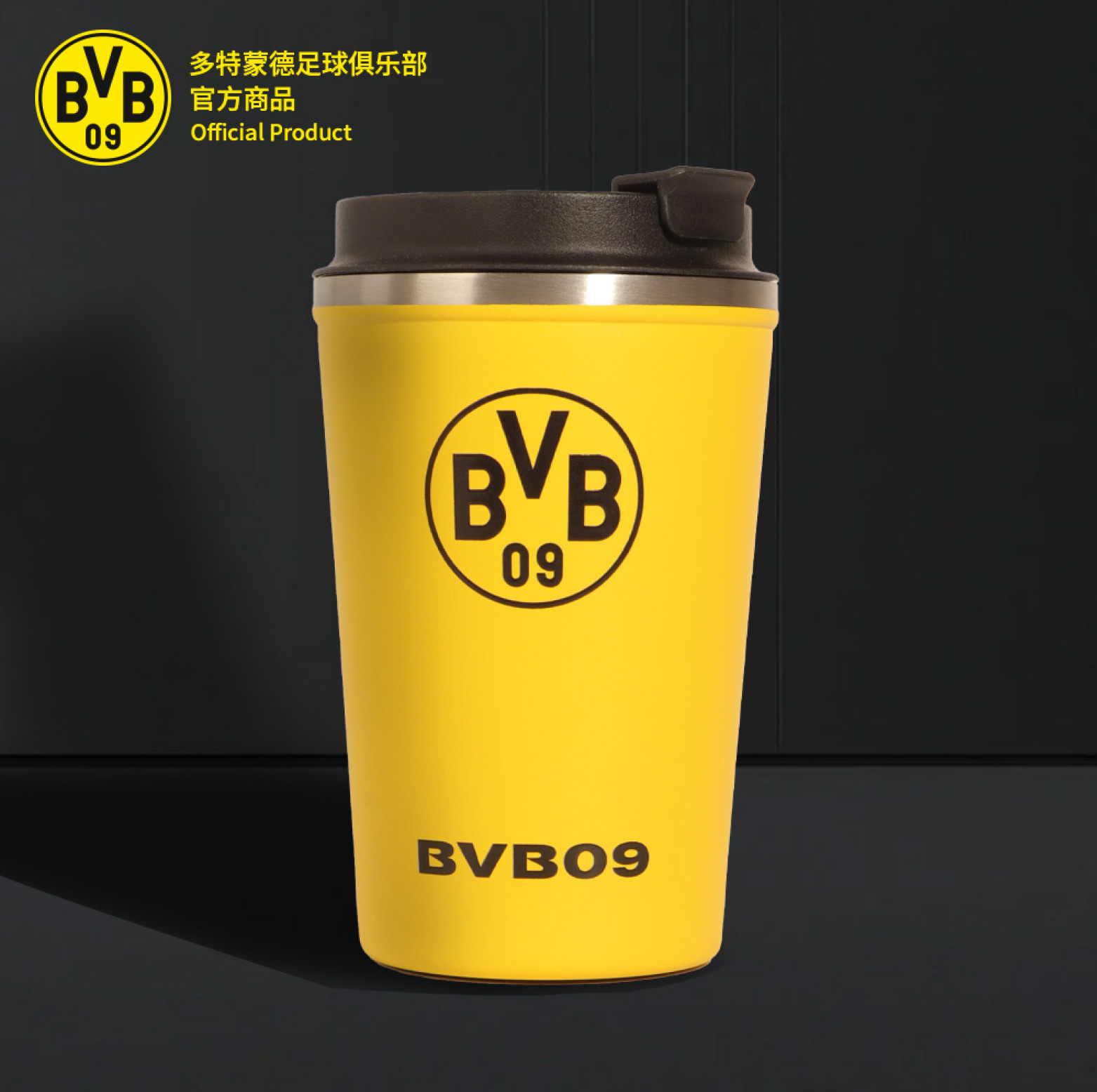 【官方正版】多特蒙德足球俱乐部 | 队徽黄色咖啡杯卡扣杯盖款380ml