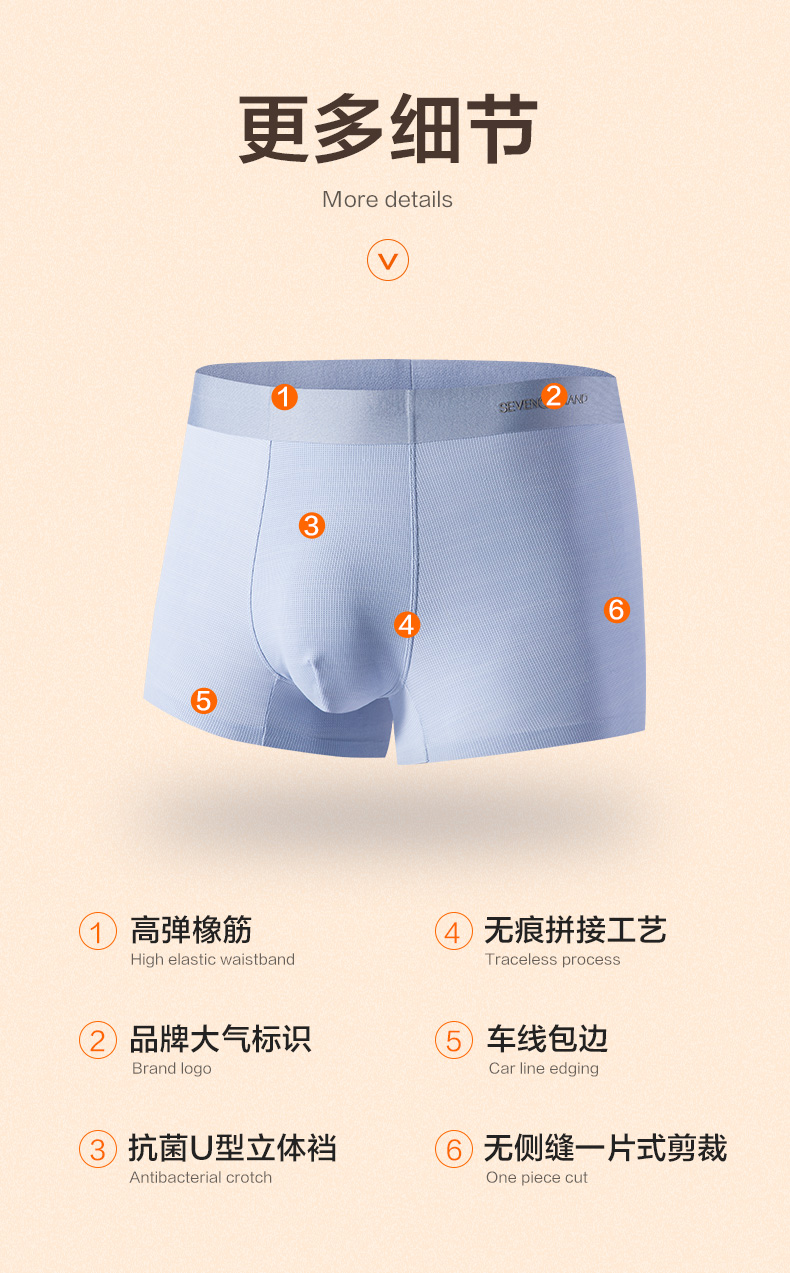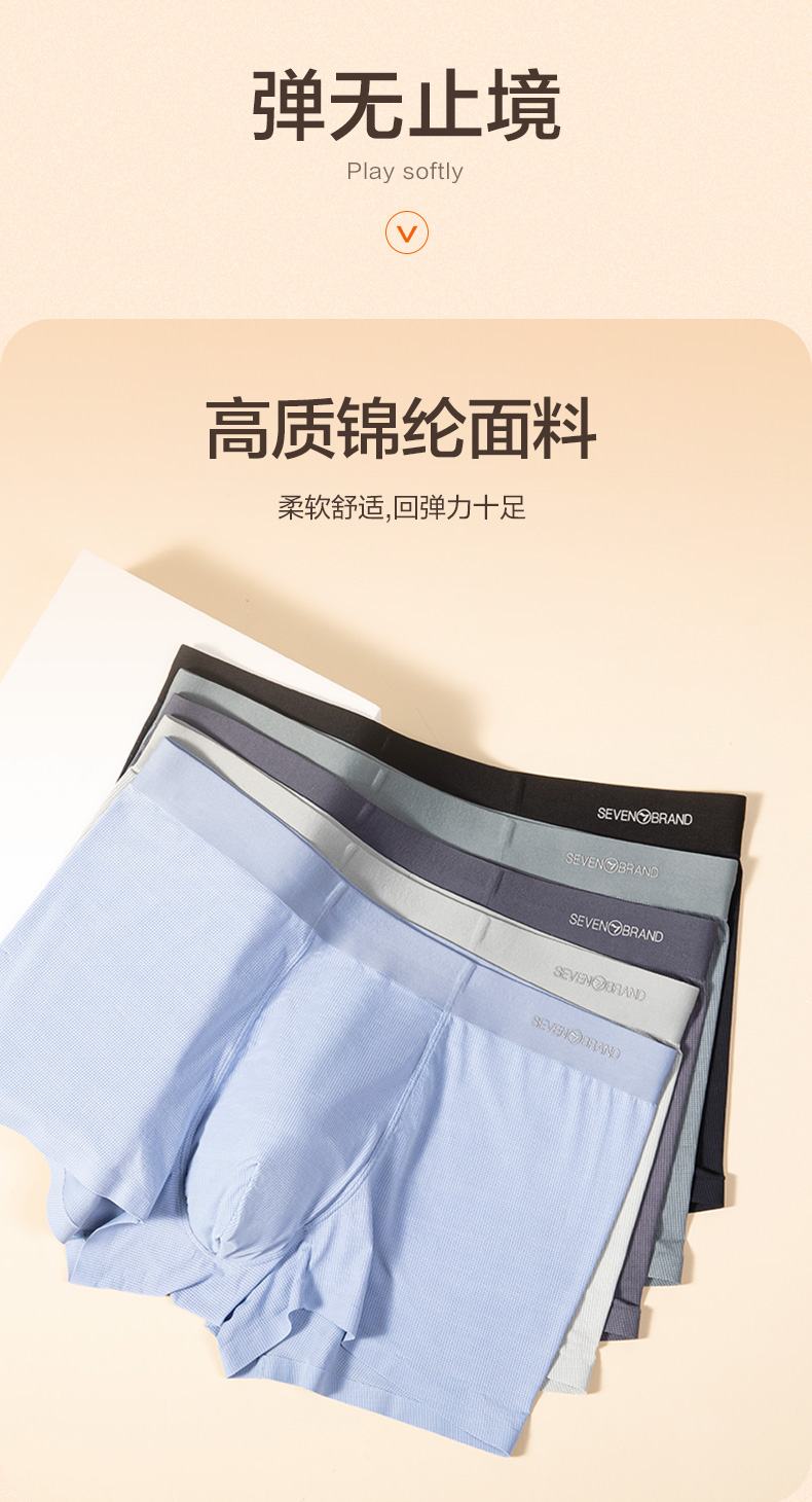 柒牌内裤男士夏季薄款无痕运动休闲抗菌裆平角裤四角短裤透气裤衩 123F70430