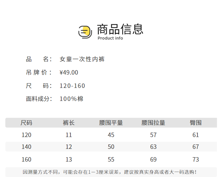 巴拉巴拉儿童一次性内裤平角男女童短裤中大童三角免洗日抛五条装