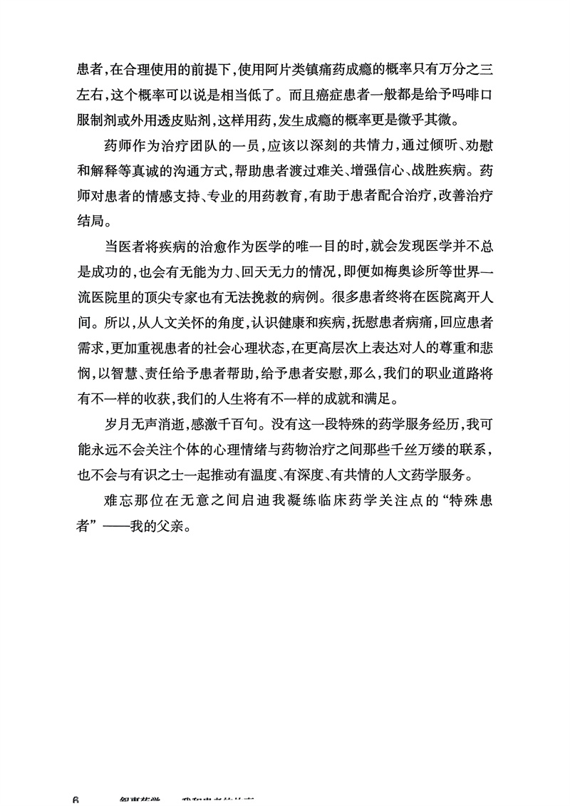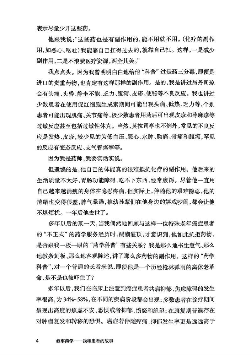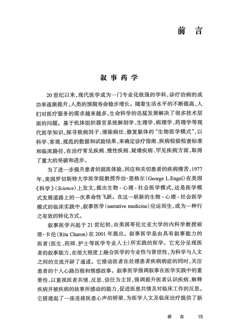 在临床药学理念和知识越来越普及的情况下,人文知识会变得越来越重要。叙事医学、叙事药学正是医药学知识技能与人文相结合而诞生出的一个新领域,一项新技能。近年来,中国药师在药学服务中,积极探讨叙事医学应用于药学服务的意义和实践,探索提高药师叙事能力的方法,产生了良好的社会效益。中国医药教育协会合理用药专业委员会为了总结推广他们的叙事药学实践经验,推动有温度、有深度、有共情的人文药学服务,发起《叙事药学一一我与患者的故事》征文活动。协会已于2022年底完成征文活动,经过整理,拟集结成册出版。本书拟收集优秀征文,分享药师在药学服务实践中,与患者之间真实、鲜活、 独特、感人的故事,助力药学工作向“以患者为中心”转型,提高药学服务的 深度,培养药师人文素养,促进药患关系良性发展,树立药师良好的职业形象。