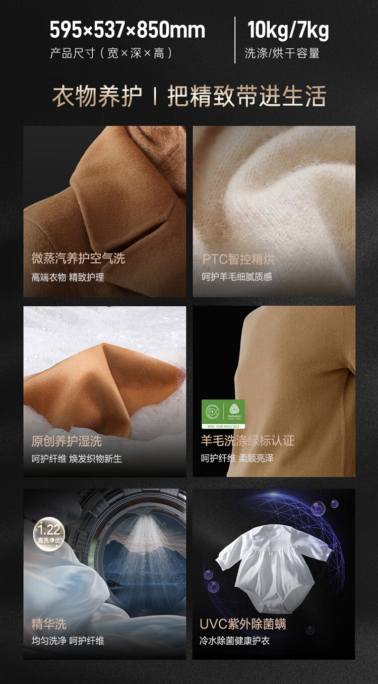 卡萨帝洗衣机滚筒带烘干10kg全自动家用洗烘一体机CE HB10SWPLAU1 10公斤洗+7公斤烘 智能投放 洗净比1.22丨直驱精华洗丨养护湿洗丨PTC智控精烘