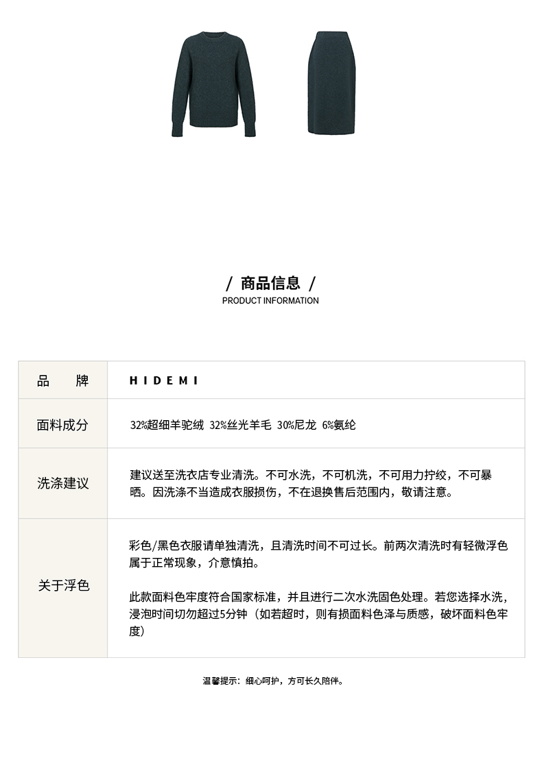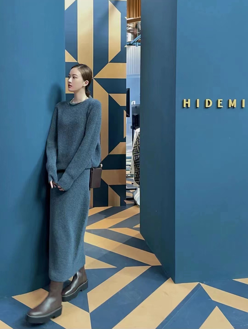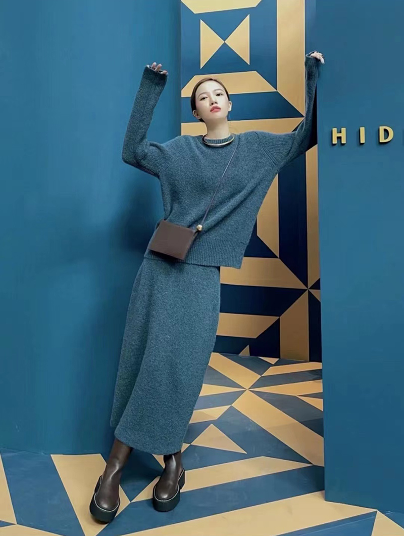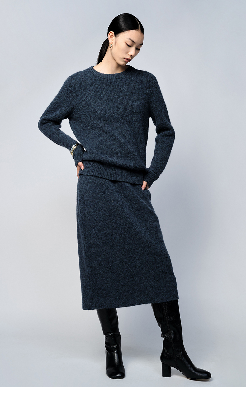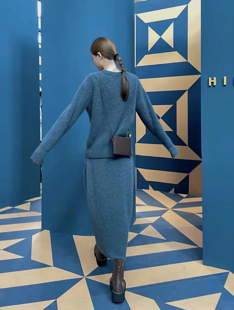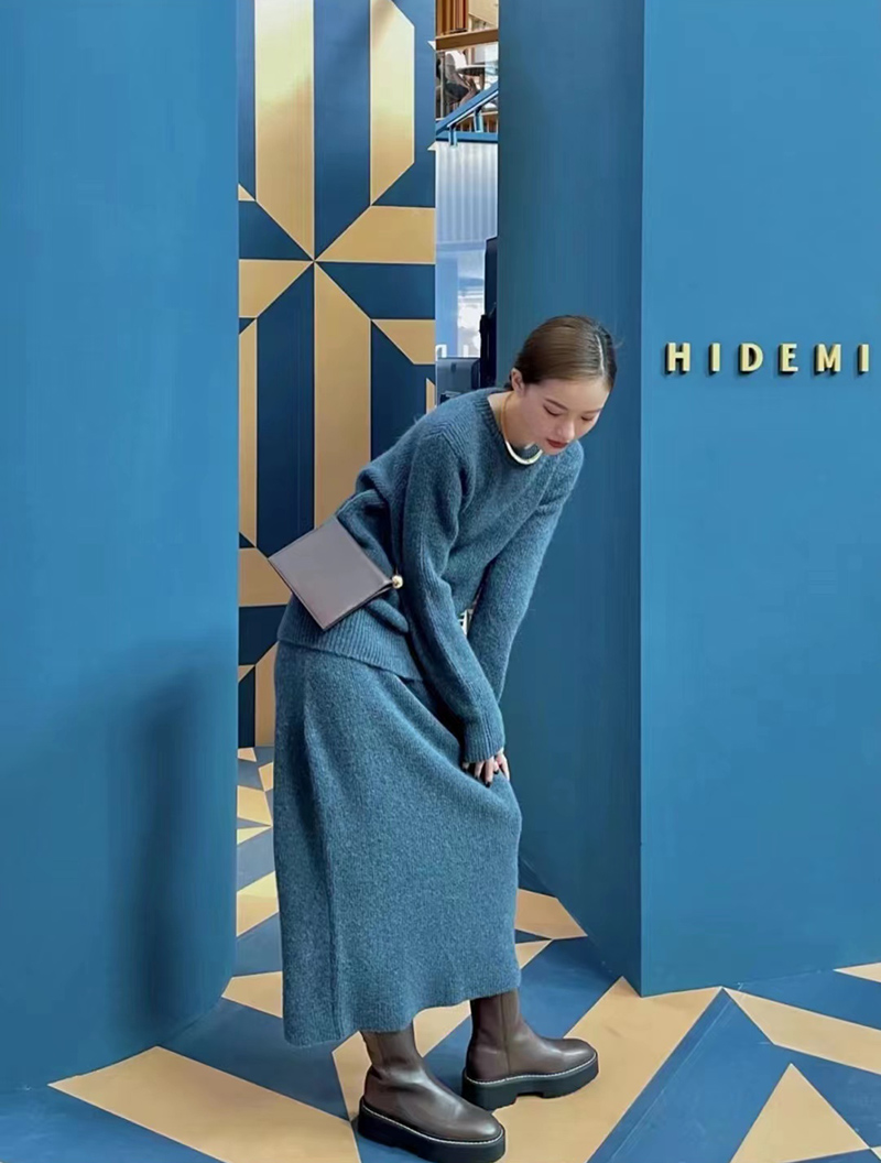 HIDEMI 琥珀蓝羊驼绒套装 毛衣/半身裙