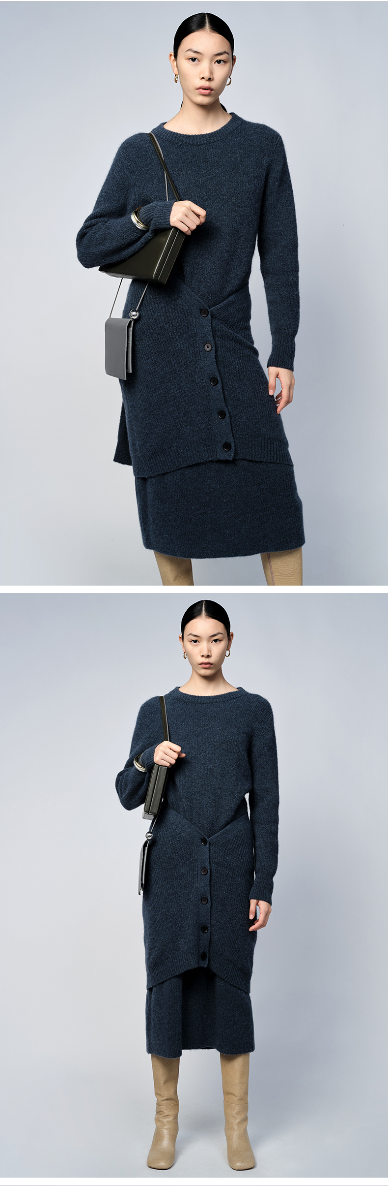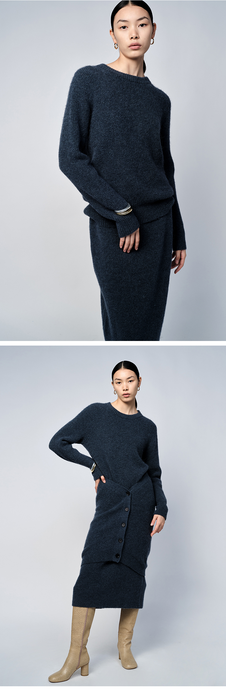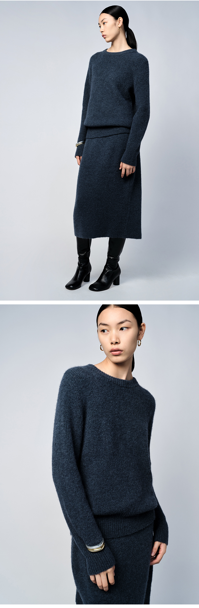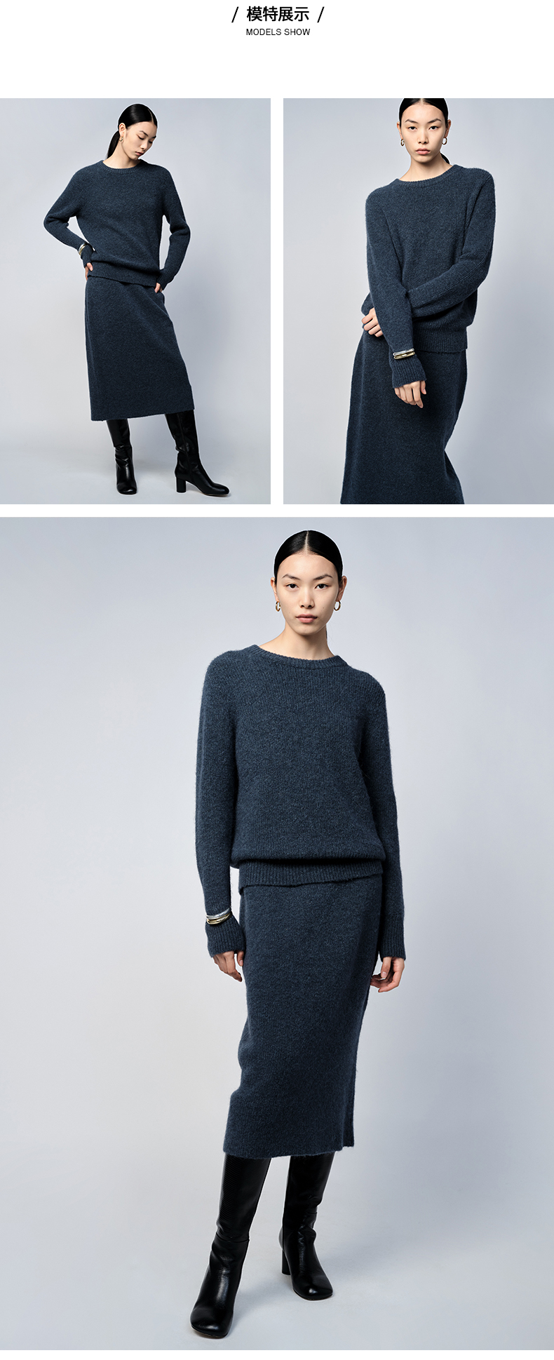 HIDEMI 琥珀蓝羊驼绒套装 毛衣/半身裙