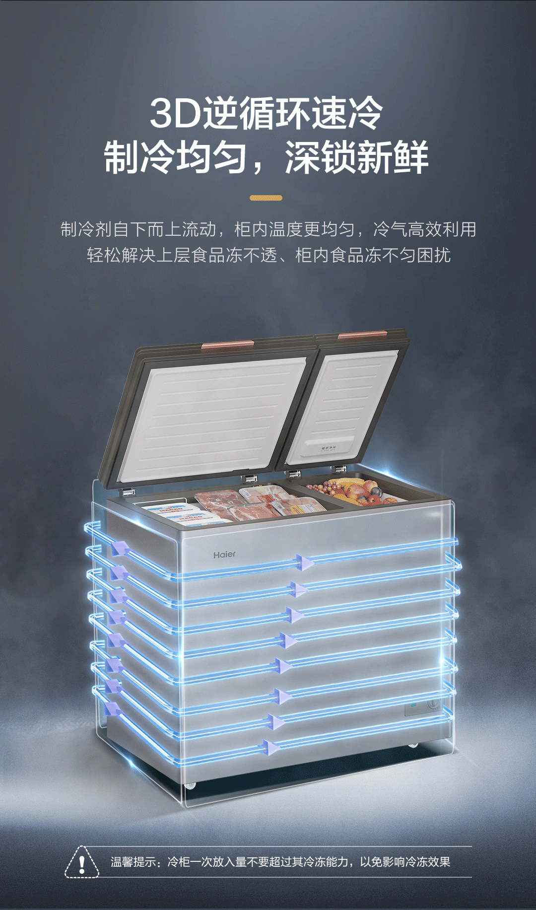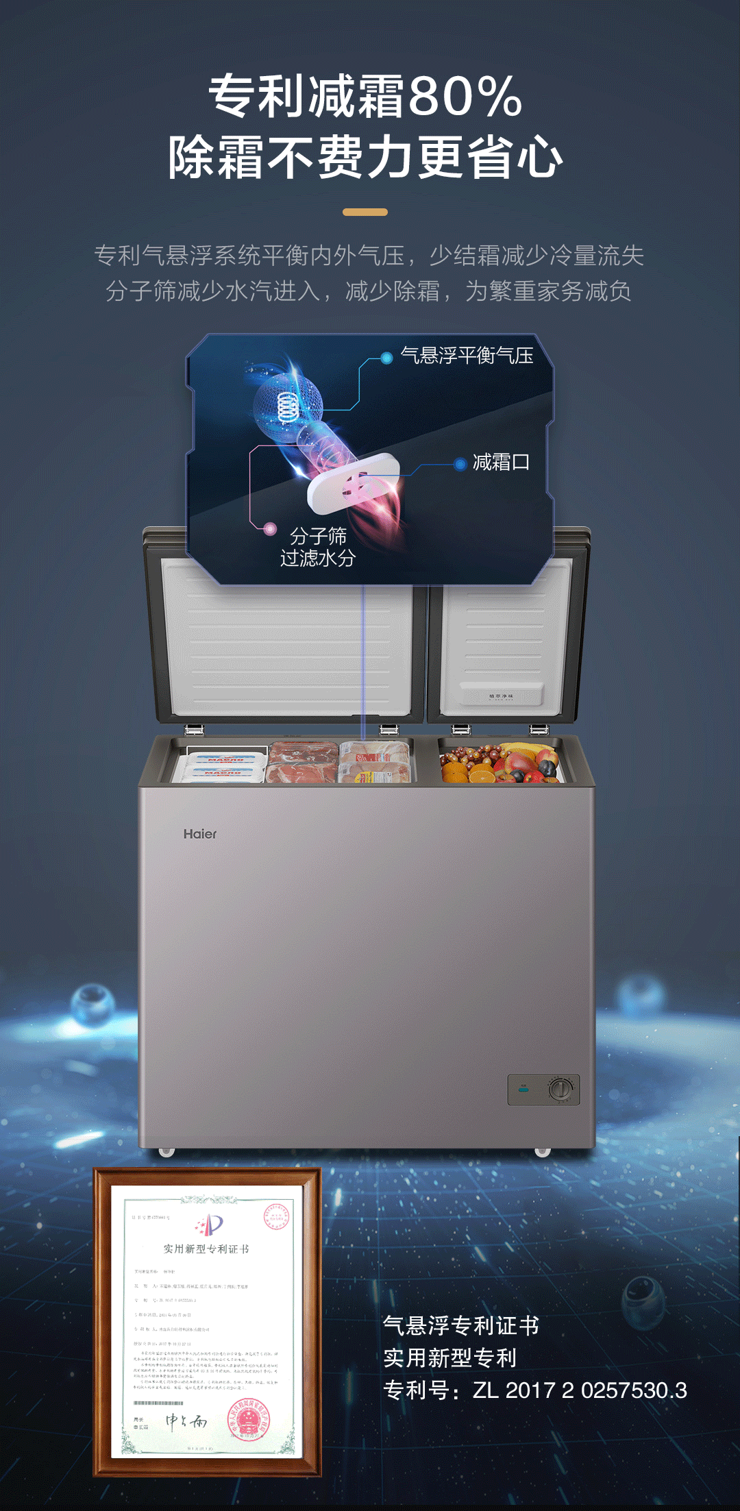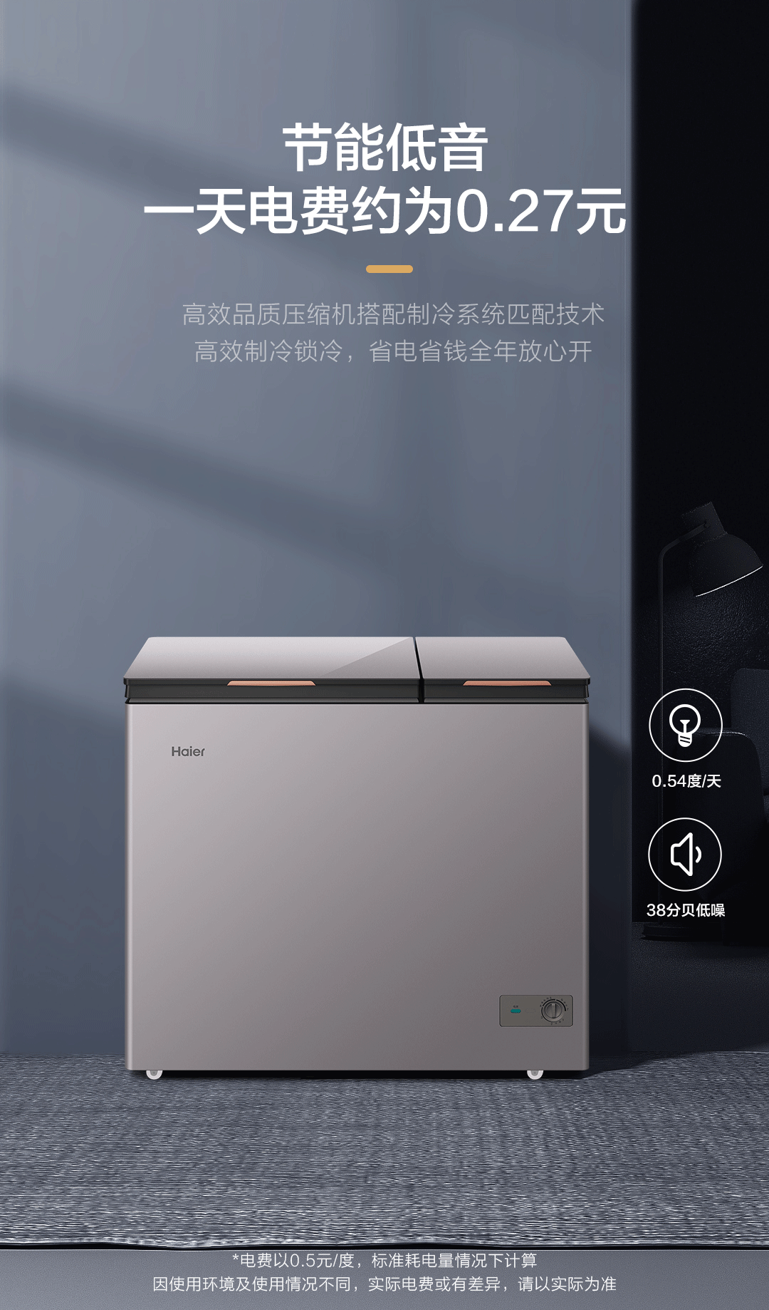海尔(Haier)212升幻彩系列双箱双温商用家用冰柜 大冷冻小冷藏卧式冰柜家用小型冰箱冷柜FCD-212GHXPGD