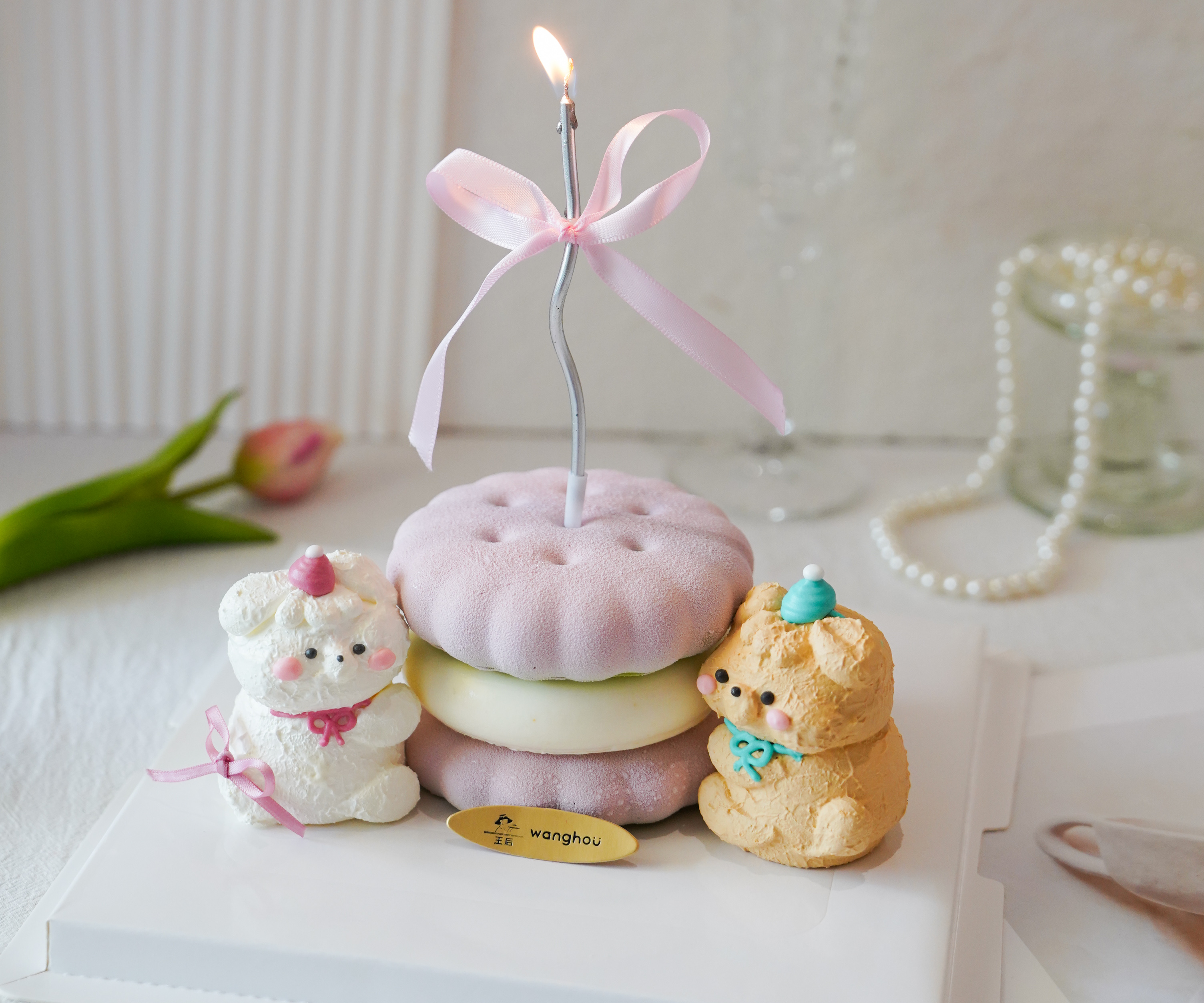 开心果覆盆子慕斯,小小的饼干造型却有丰富的层次感!
