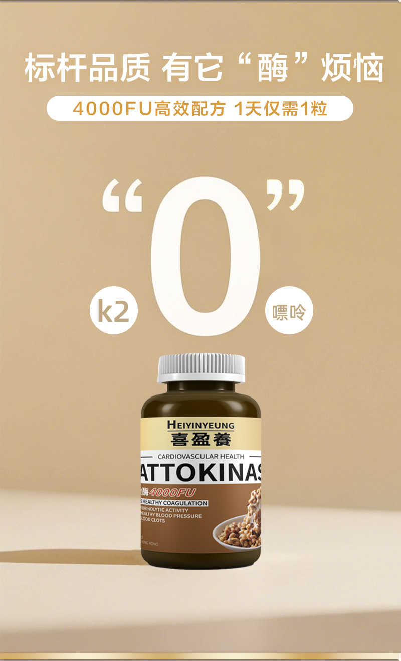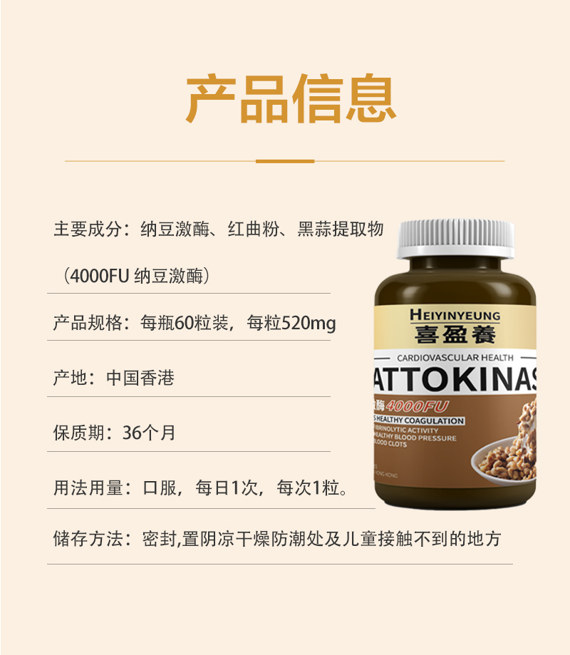 【心脑无忧】香港直邮纳豆激酶胶囊(4000FU)—60粒装