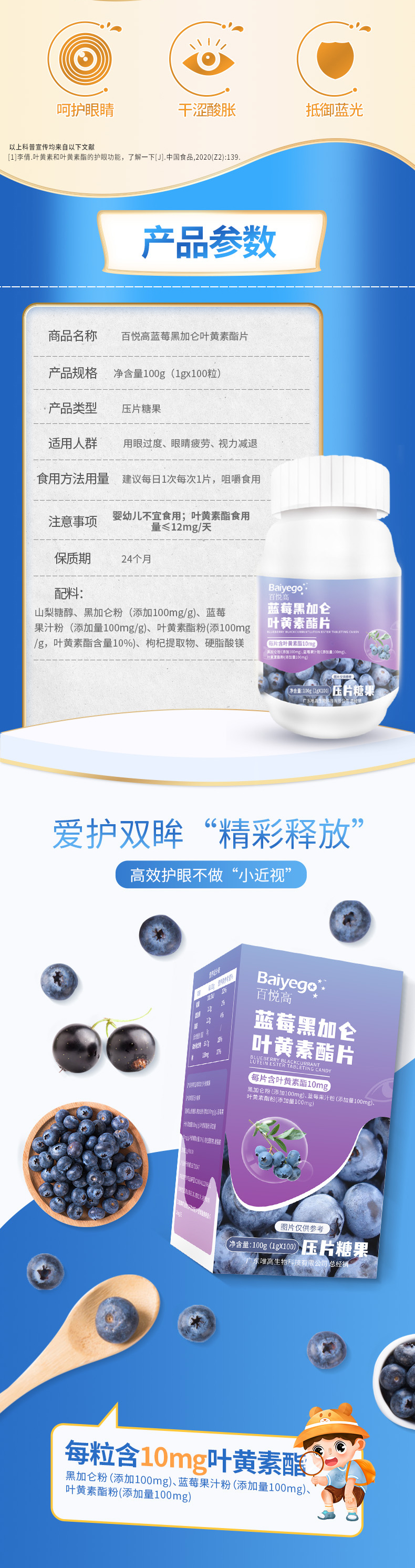 ²79元/2瓶【蓝莓黑加仑叶黄素酯片100g】100粒/瓶 每粒含10mg叶黄素酯 HM02-CRMM-WLP·