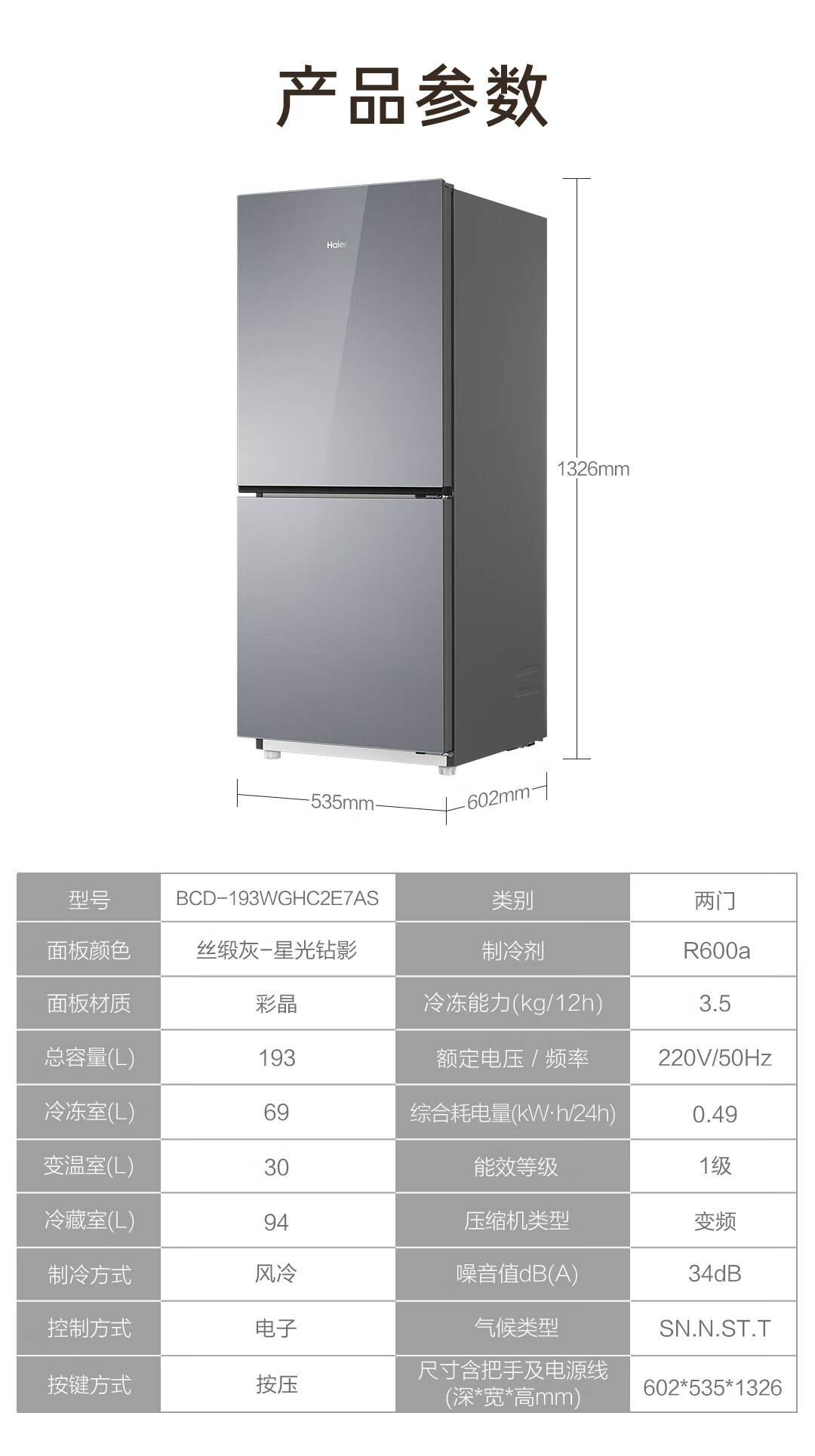 海尔(Haier)冰箱 BCD-193WGHC2E7AS
