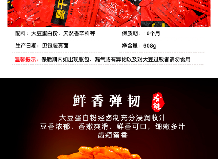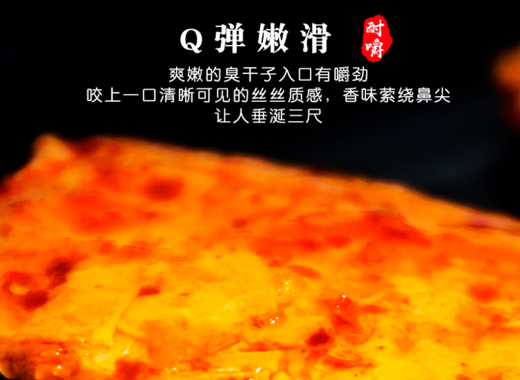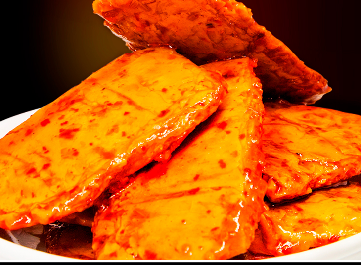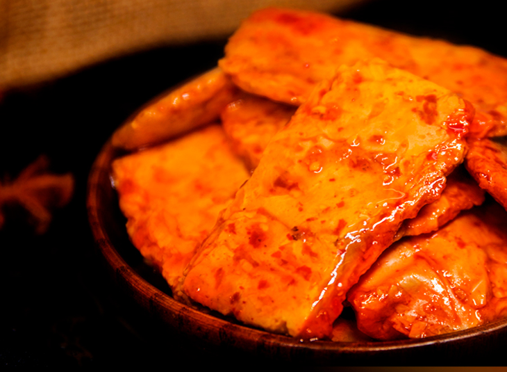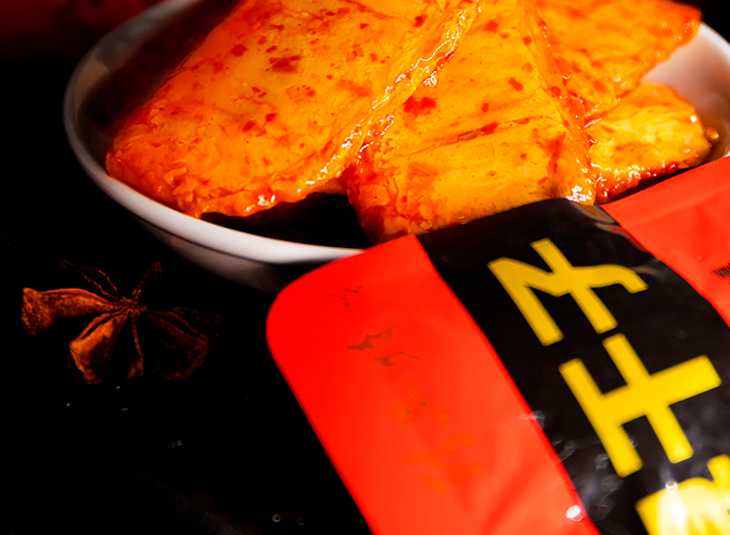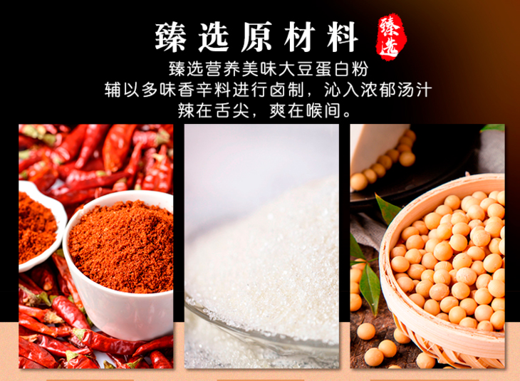 德和丰臭干子,甄选营养美味大豆蛋白粉,辅以多味香辛料进行卤制,沁入浓郁汤汁,辣中带爽。