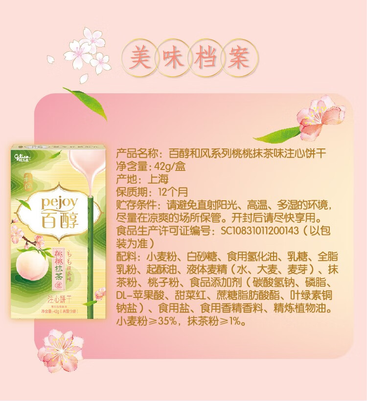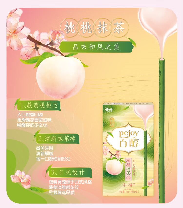格力高和风百醇桃桃抹茶味注心饼干 42g