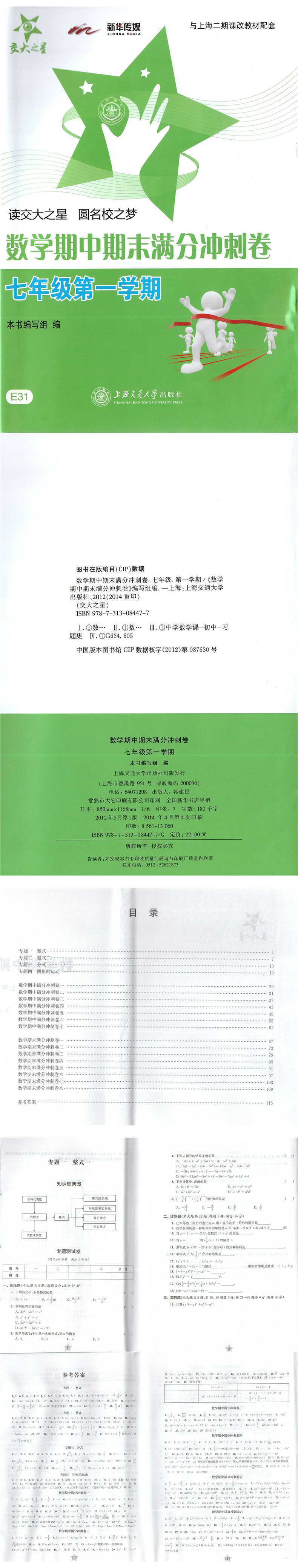正版 交大之星 期中期末满分冲刺卷 数学 七年级第一学期/7年级 上教材配套同步辅导冲刺模拟练习题试卷