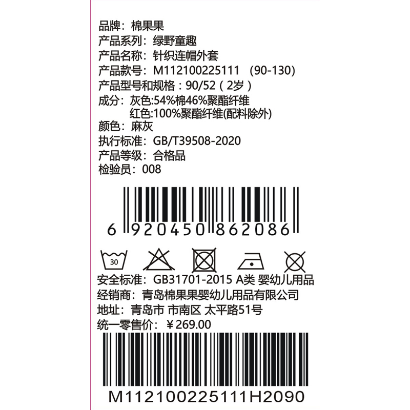 | 袖长(后中量) | 45 | 49 | 53 | 57.5 | 62 |