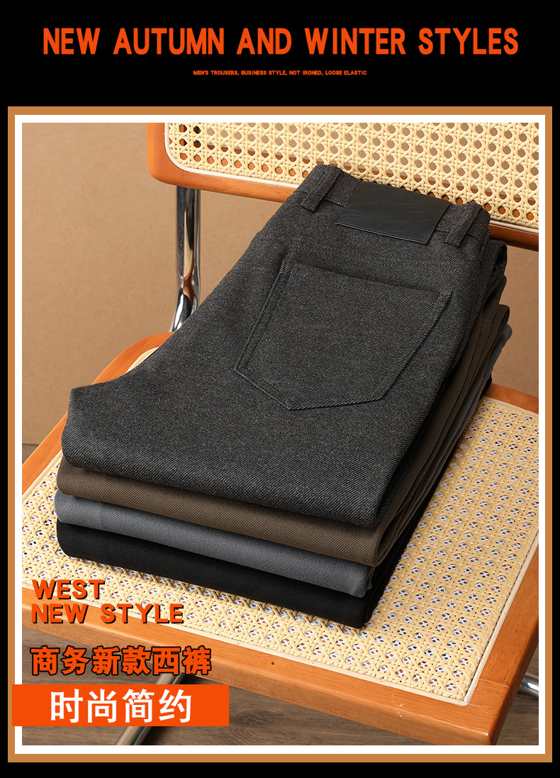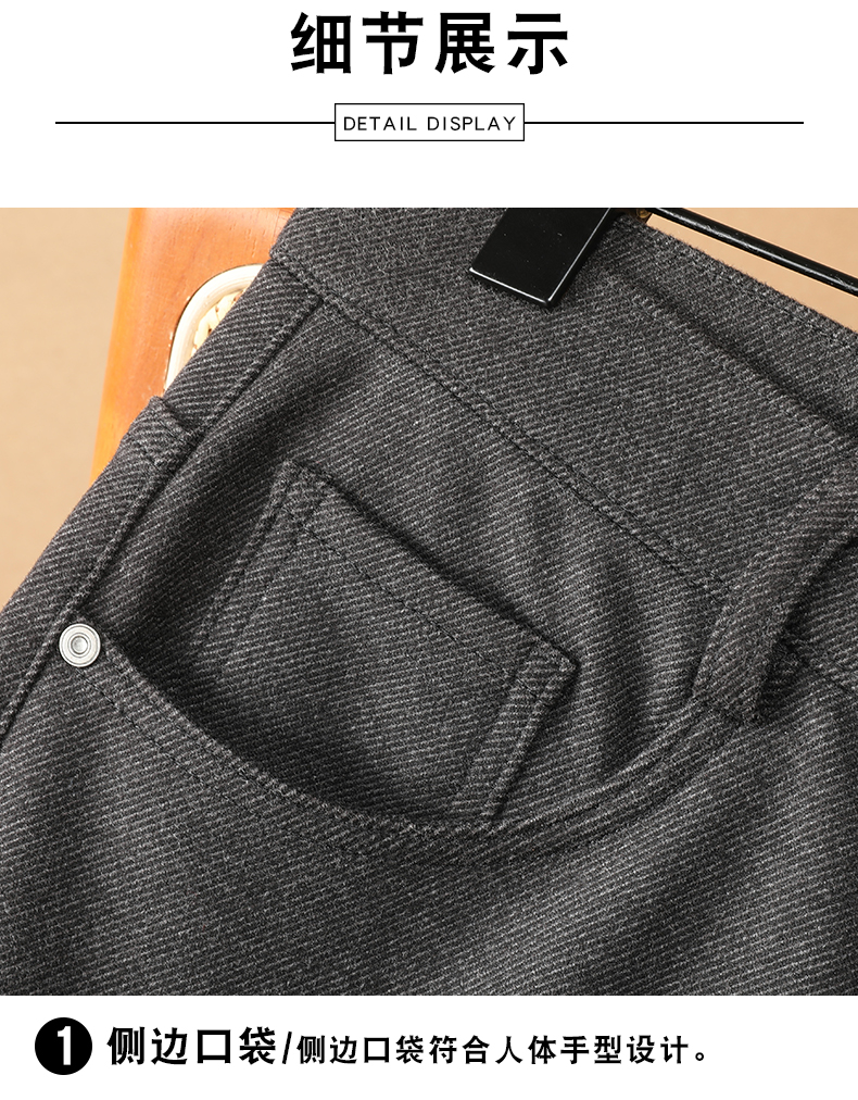 圣得西男士2025年秋季新款磨毛加厚毛呢混纺简约直筒保暖休闲长裤
