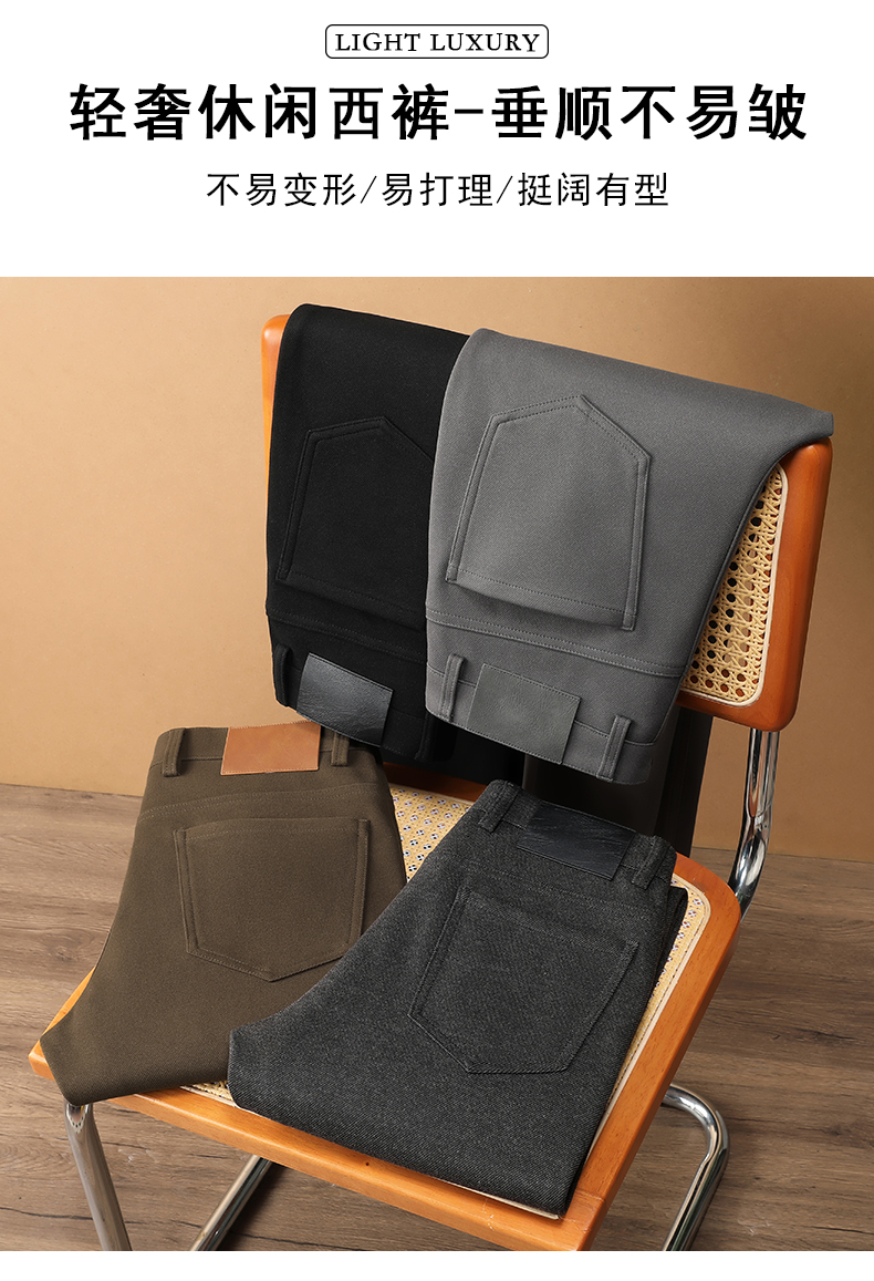 【易打理】圣得西秋冬新款卡其色毛呢直筒西装裤户外休闲裤子2462913035