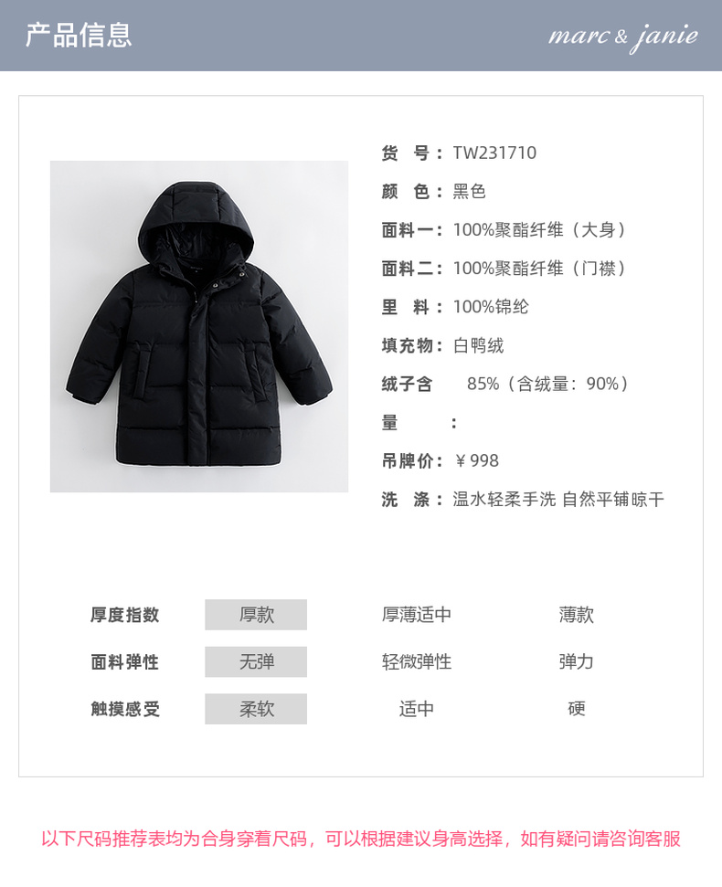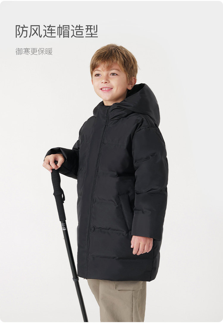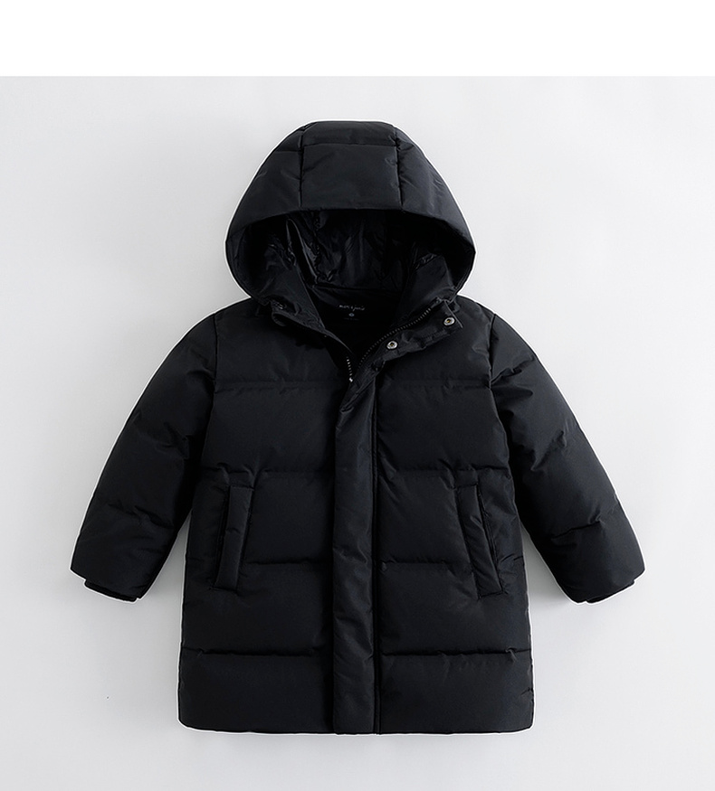 马克珍妮冬装新款 男女童连帽压胶长款保暖羽绒服231710