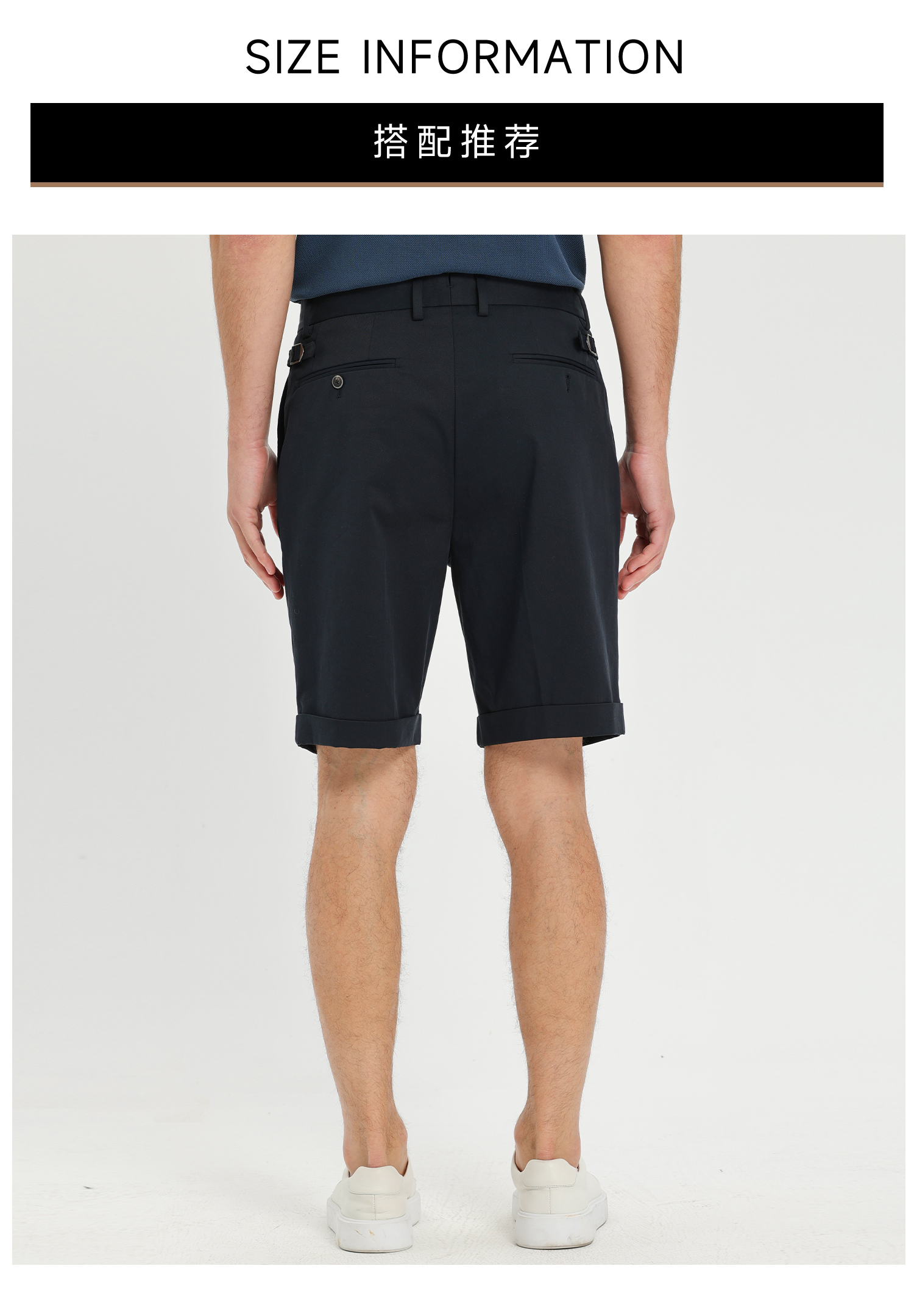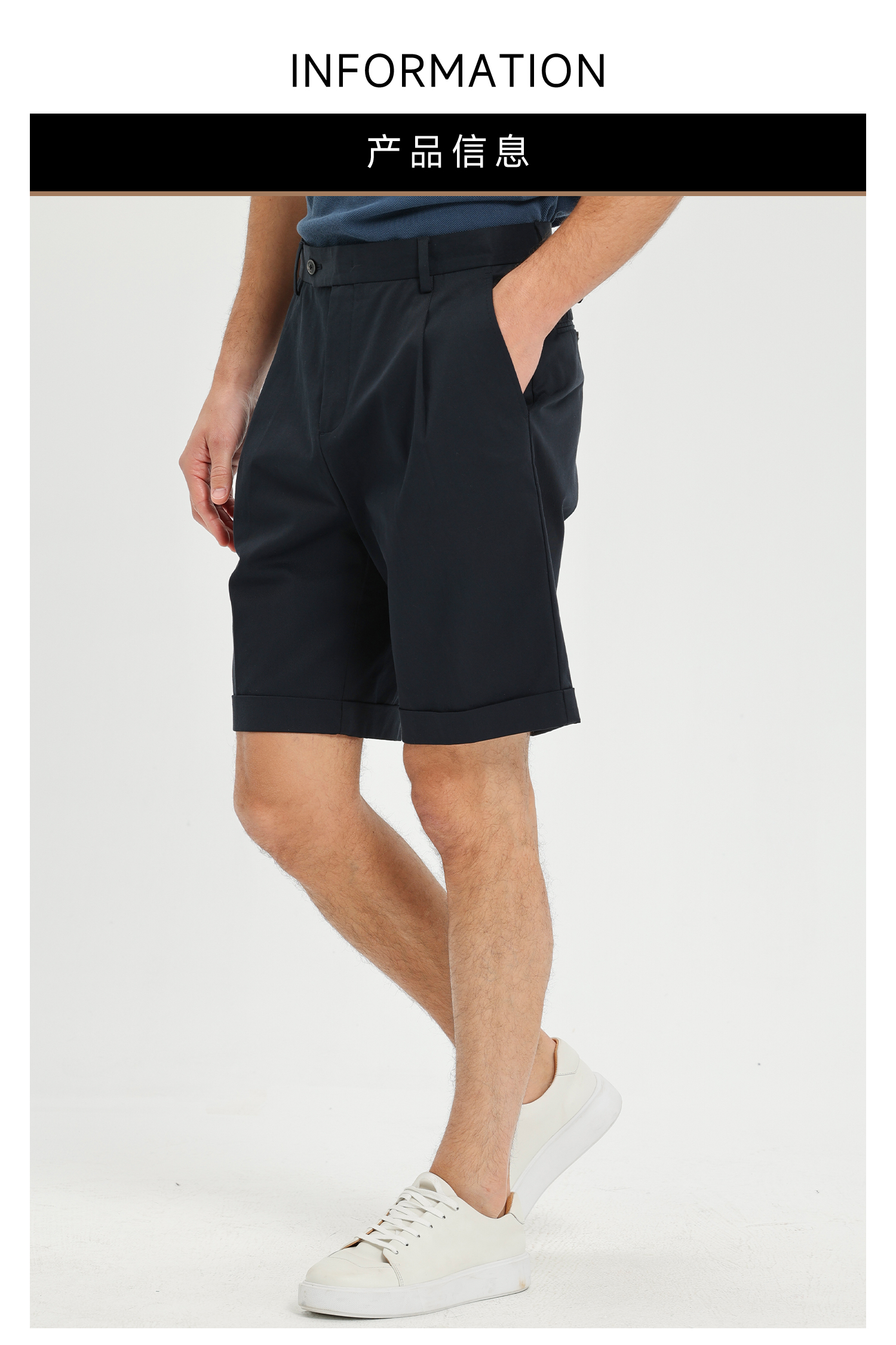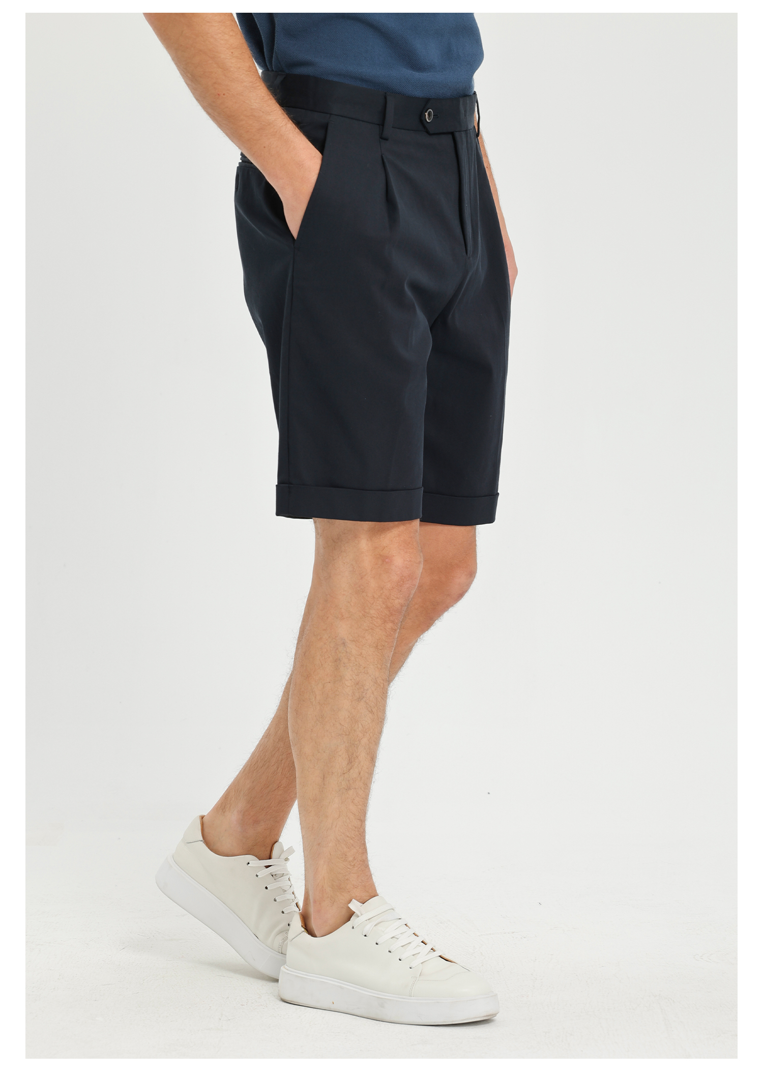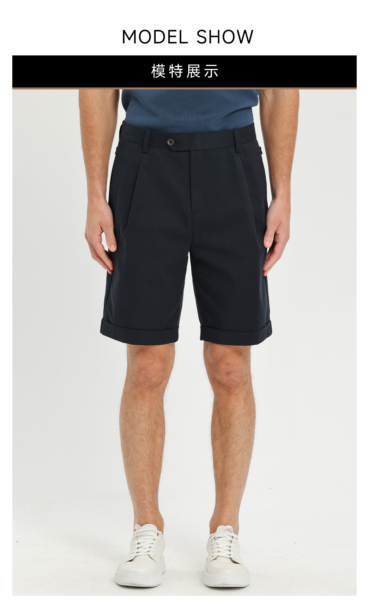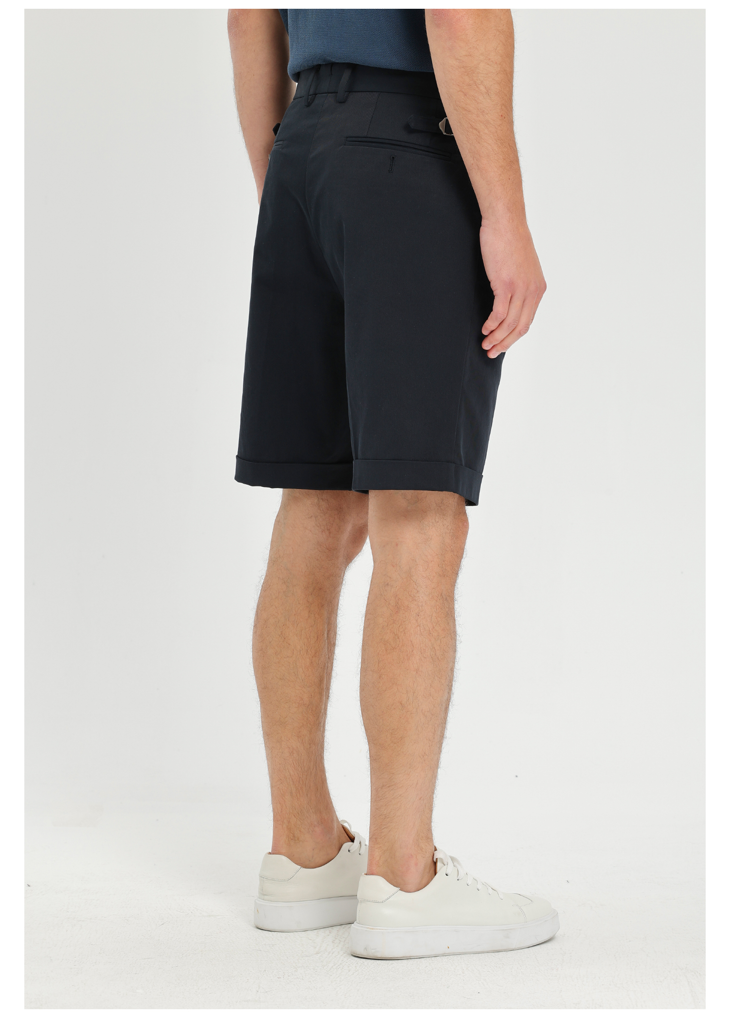 callisto藏青天丝棉混纺直筒休闲短裤