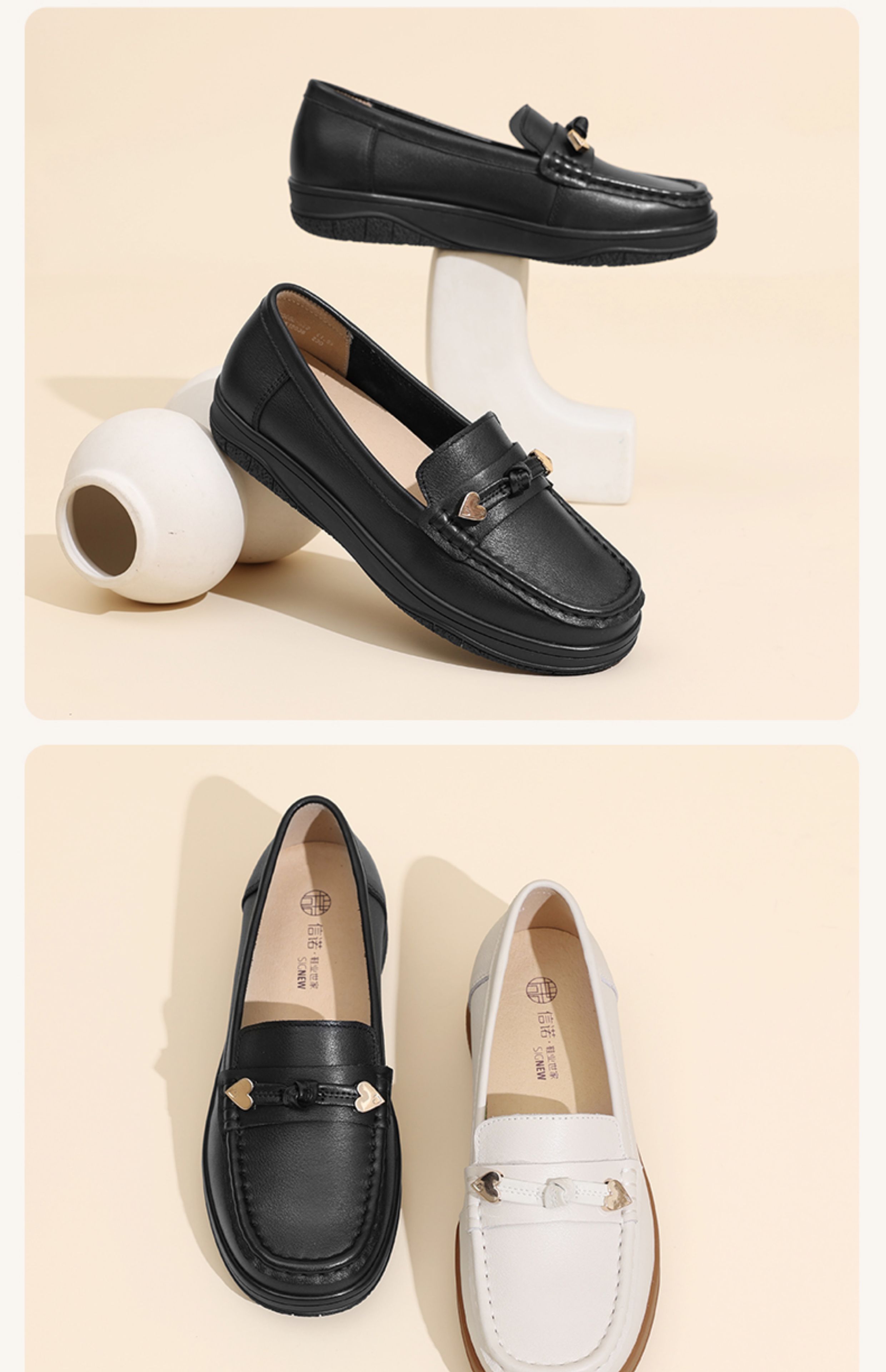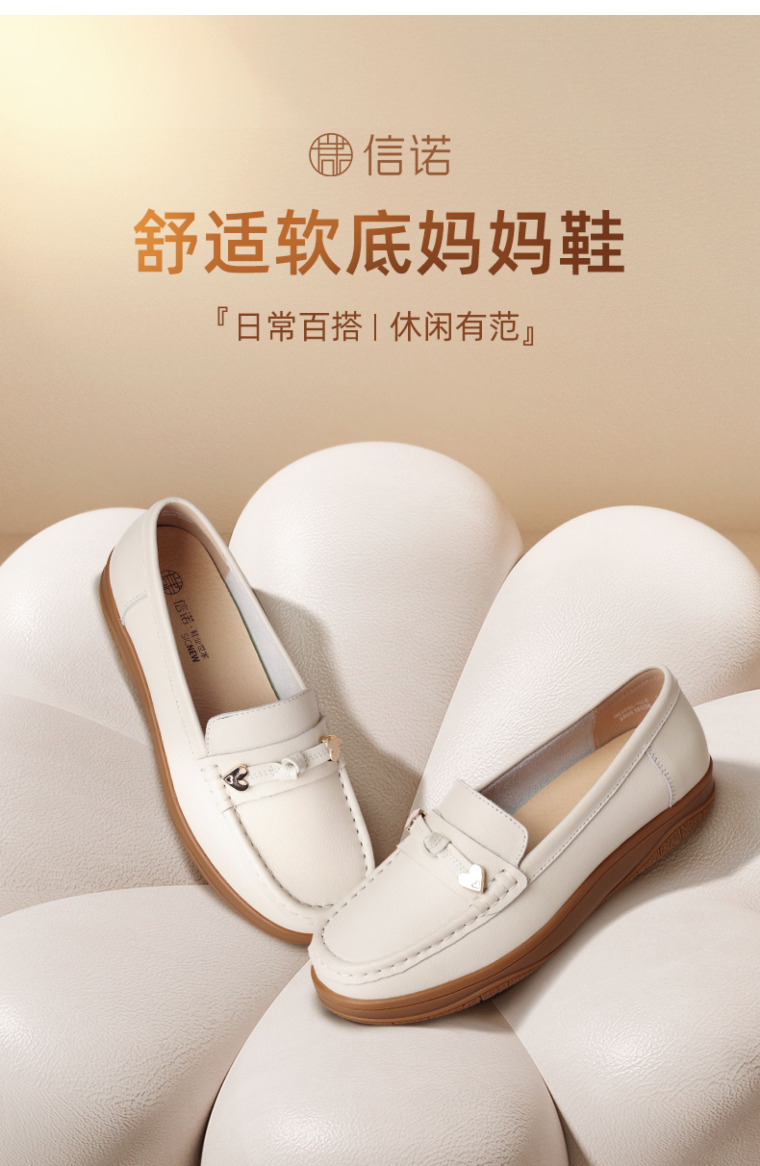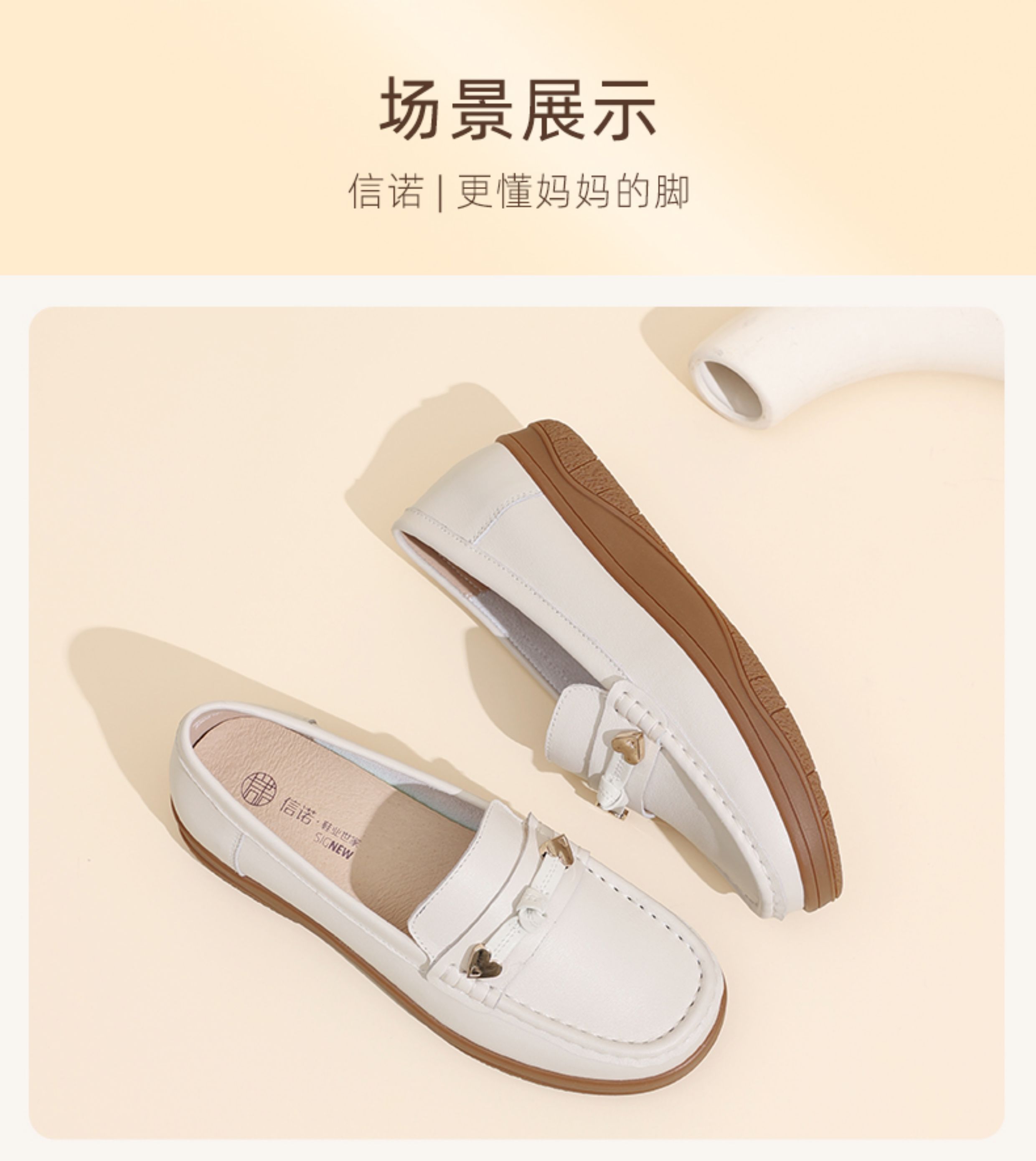 信诺妈妈鞋子女2025新款夏季中老年真皮软底一脚蹬平底单鞋乐福鞋5Q3066-N22