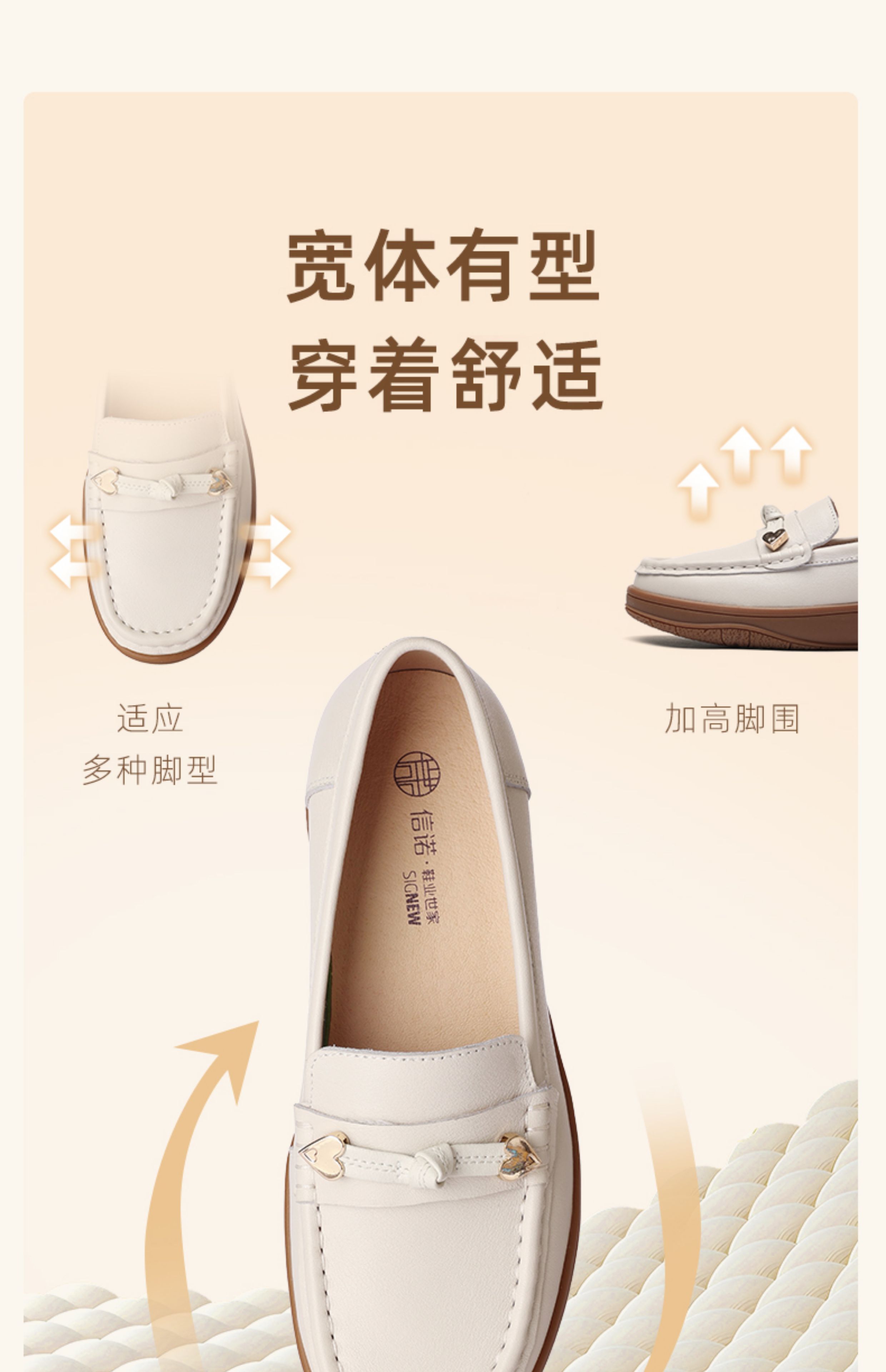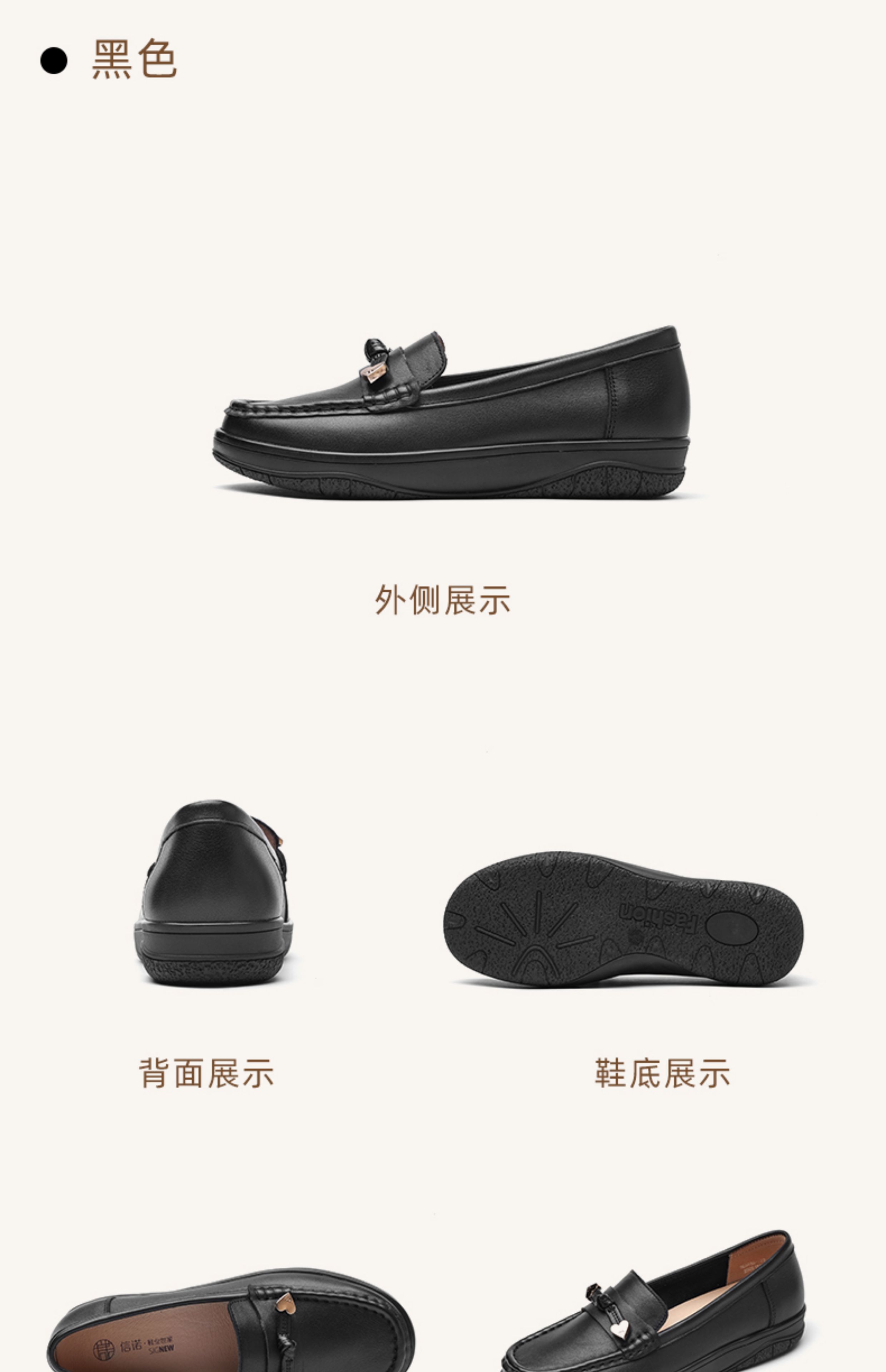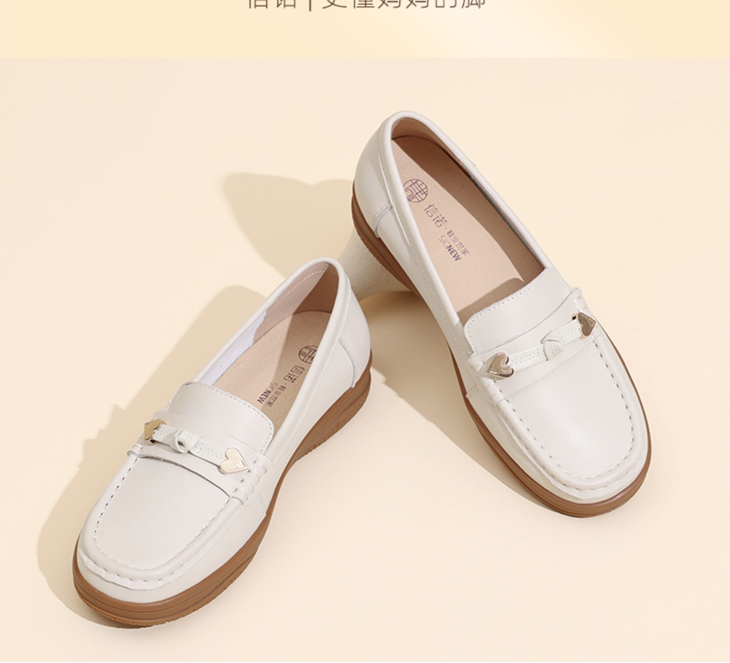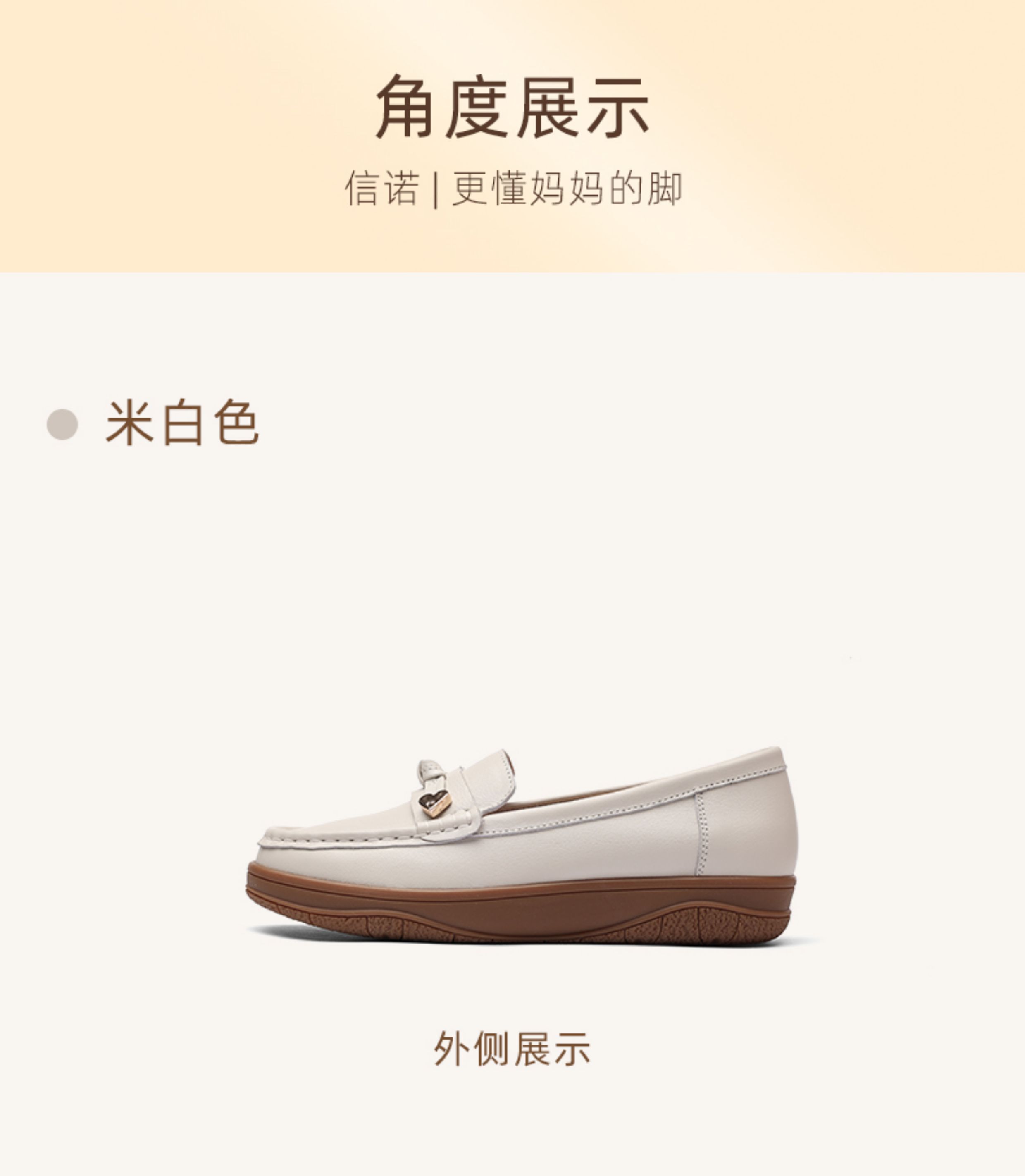 信诺妈妈鞋子女2025新款夏季中老年真皮软底一脚蹬平底单鞋乐福鞋5Q3066-N22