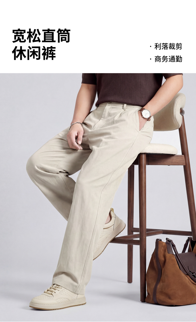 【含亚麻&含莱赛尔】圣得西男款青少年新款裤子26春季宽松休闲裤
