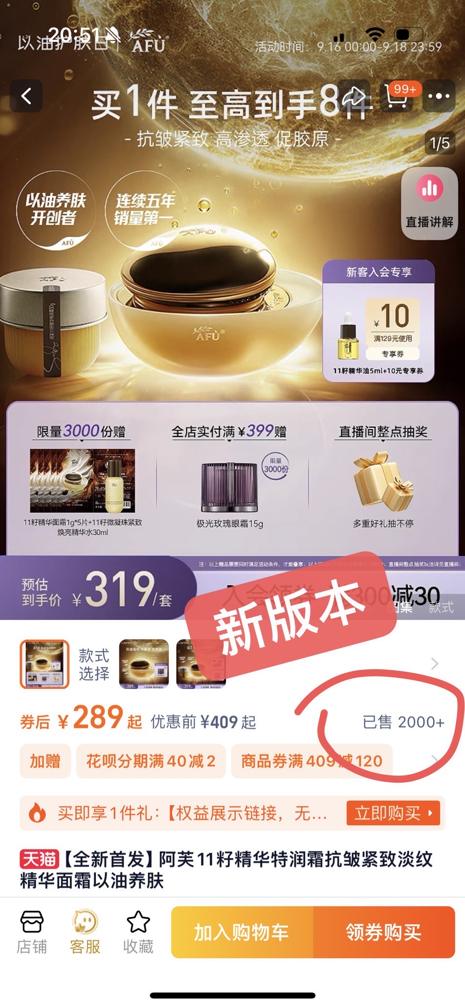⏰ 【AFU阿芙11籽抗老面霜】董洁力推正装30克十一籽面霜59破价❗️❗️是正装啊❗️❗️天猫289一瓶