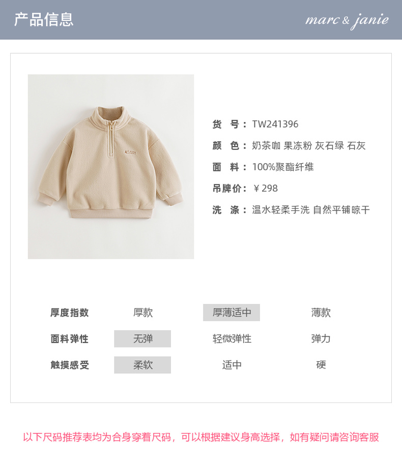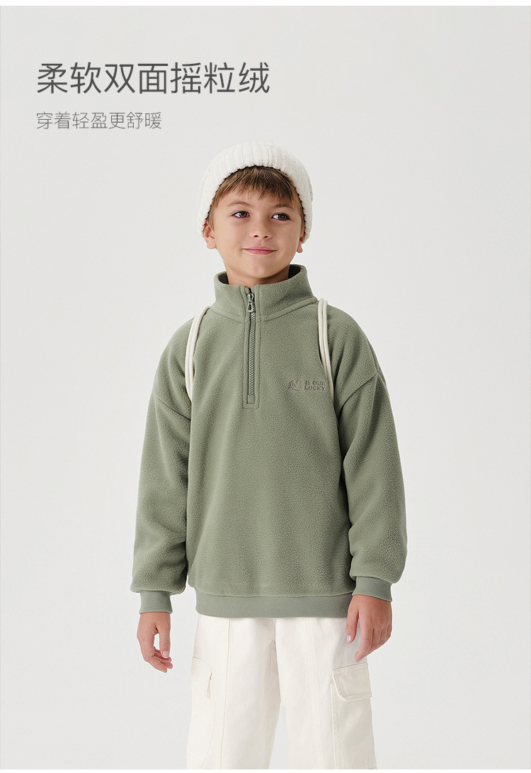 马克珍妮男女童polo领双面摇粒绒卫衣儿童时尚外套秋冬新款241396