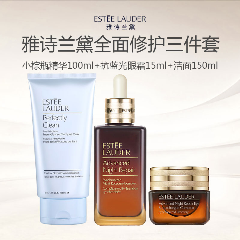 Estee Lauder雅诗兰黛全面修护三件套(雅诗兰黛小棕瓶精华100ml+抗蓝光眼霜15ml+蓝色洁面150ml)