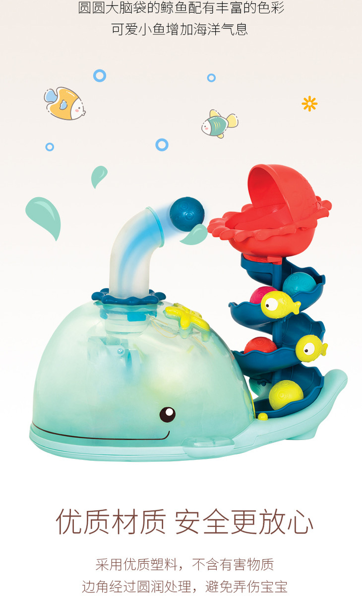 美国比乐 B.toys贪吃鲸鱼 多彩多趣味宝宝学爬神器 带声光 音乐-【玩具】