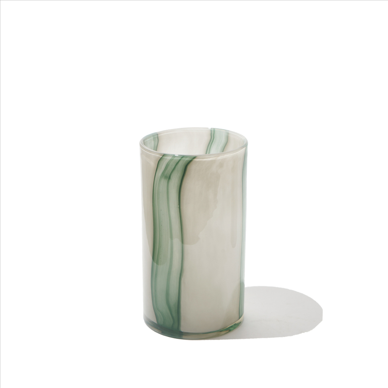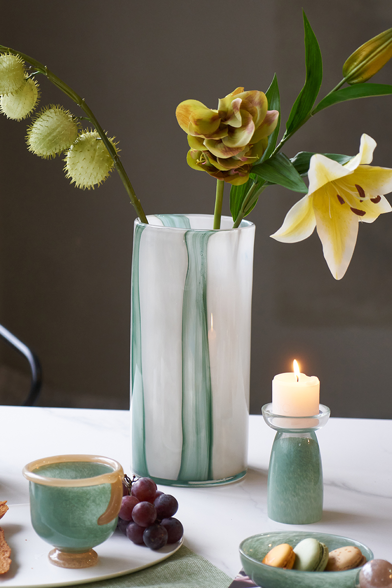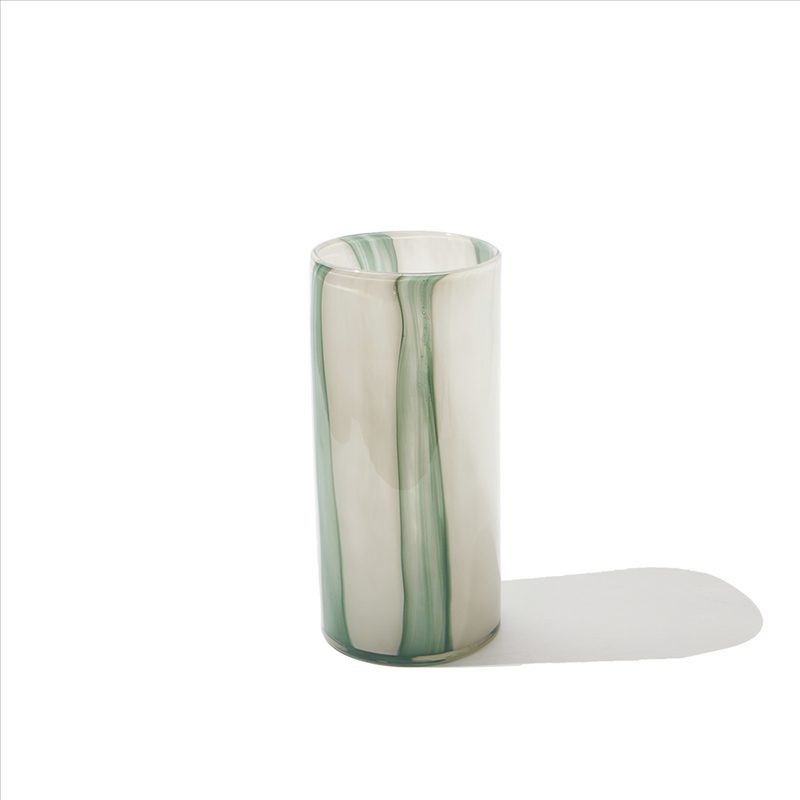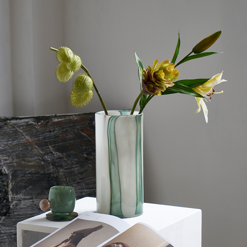 北欧简约渐变绿竖纹直筒花瓶餐桌客厅软装家居水培郁金香玻璃花瓶