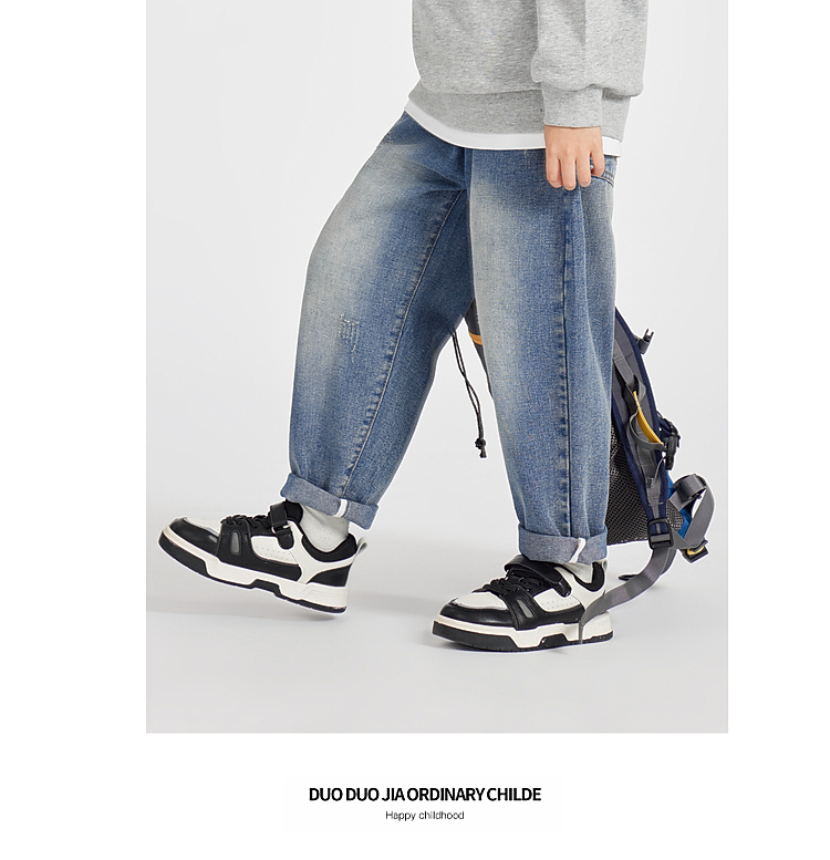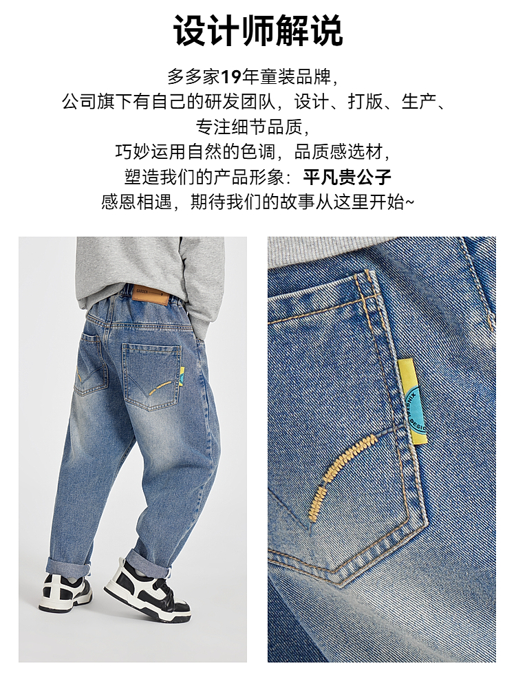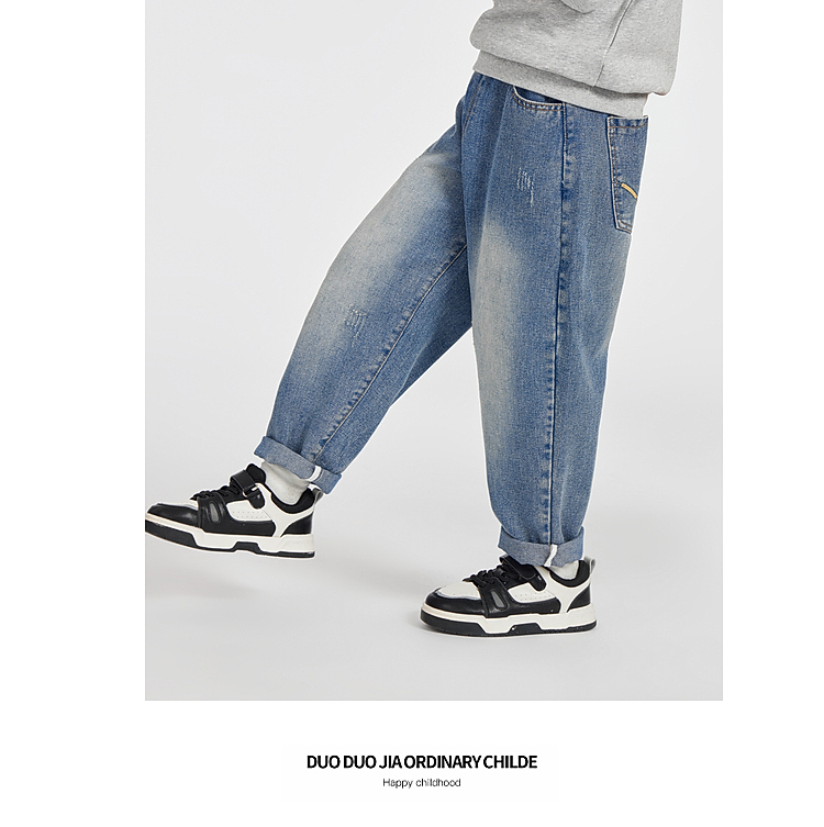 【团购价59.9】多多家男童牛仔裤2025新款春秋季儿童中大童复古洋气休闲刺绣裤子10383