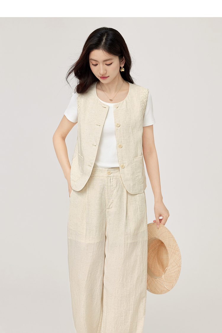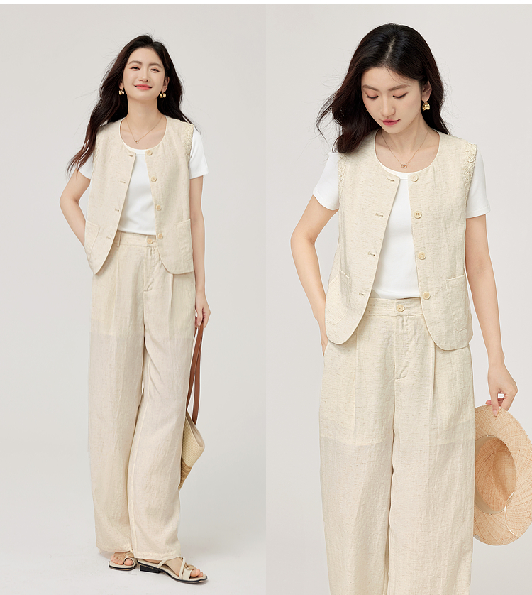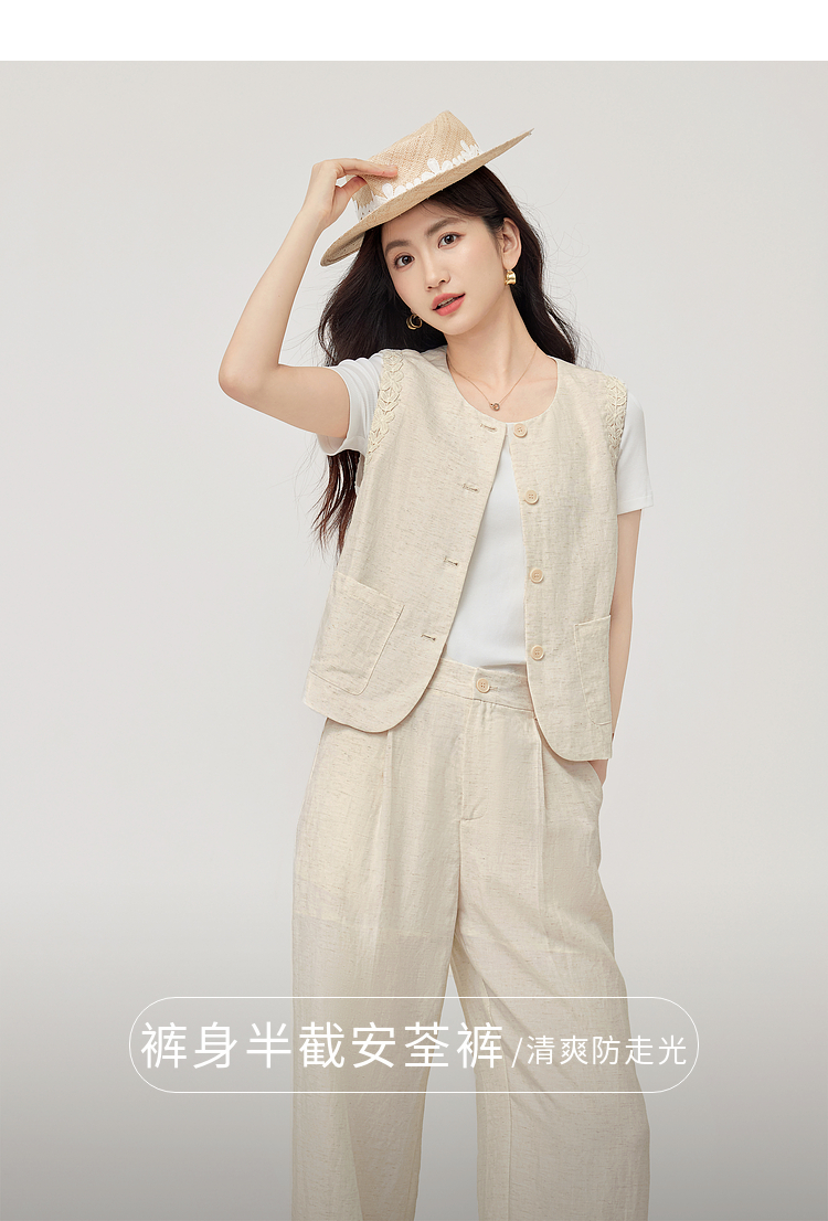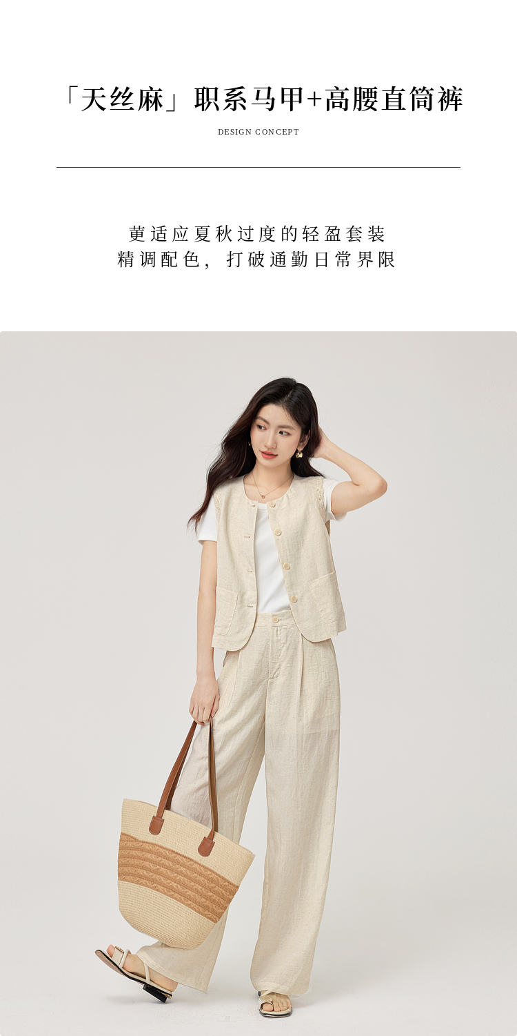 【08/12新品】熙世界大方得体穿搭套装女2025夏装新款天丝亚麻马甲休闲裤两件套
