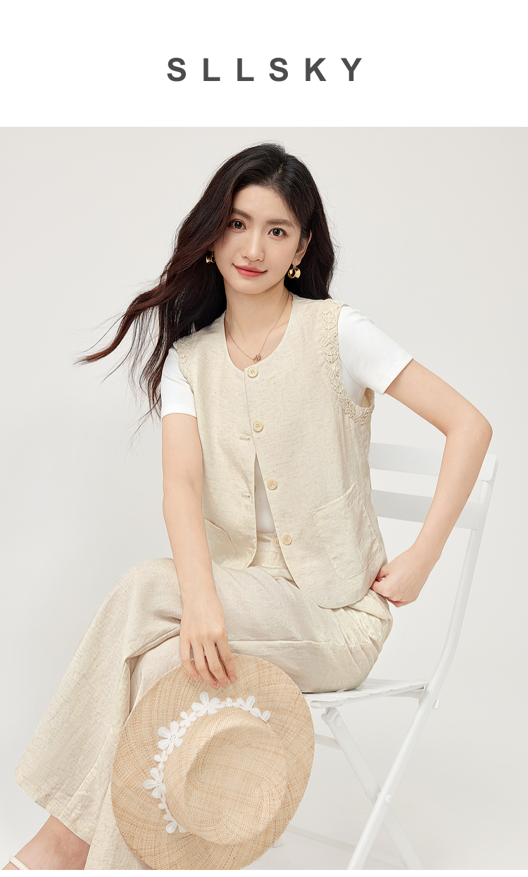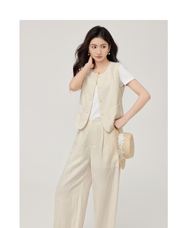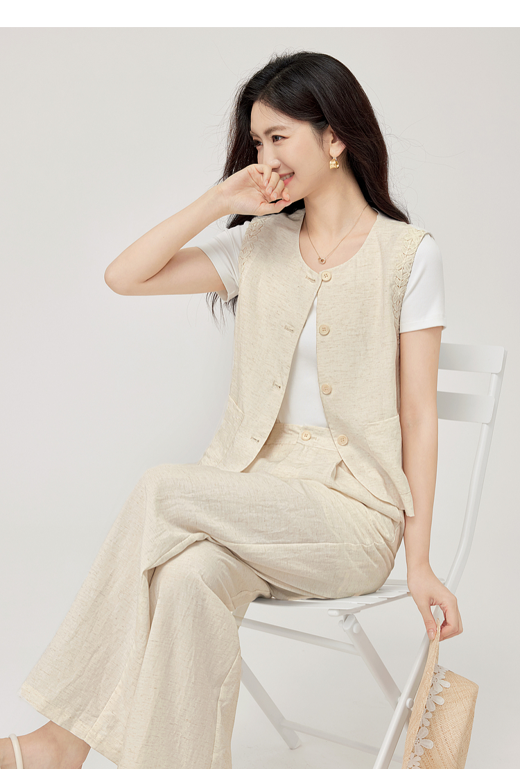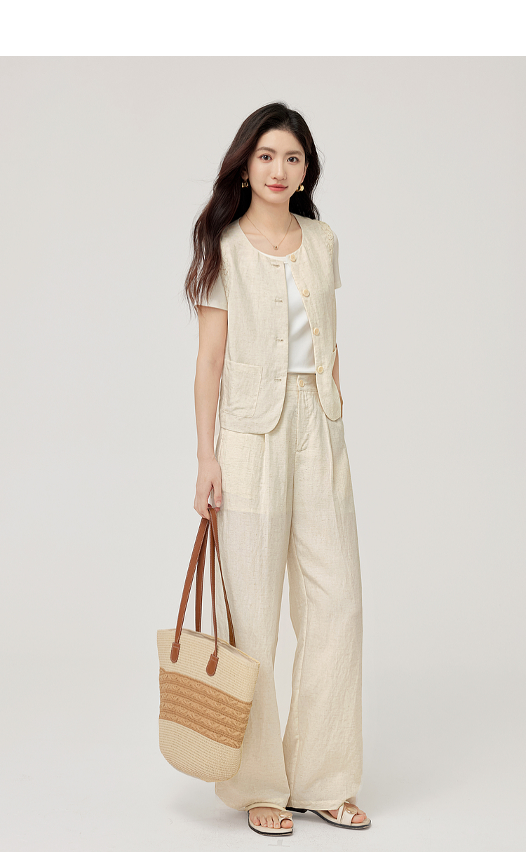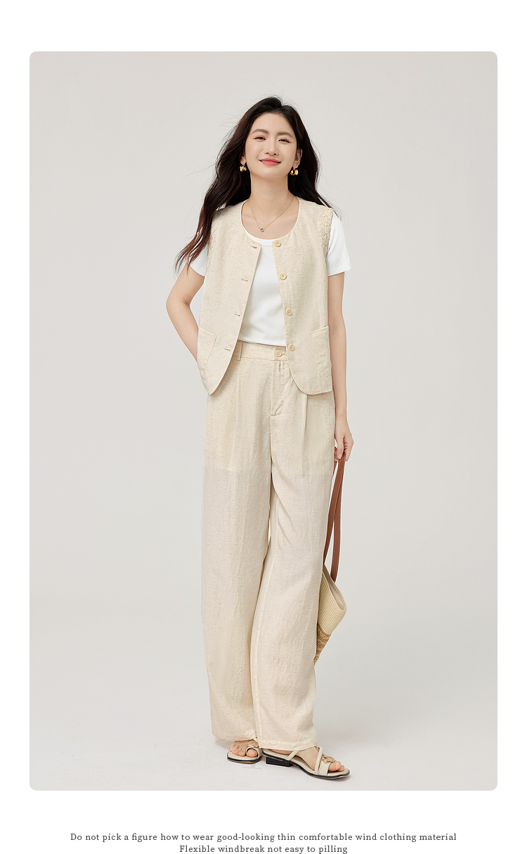 【08/12新品】熙世界大方得体穿搭套装女2025夏装新款天丝亚麻马甲休闲裤两件套