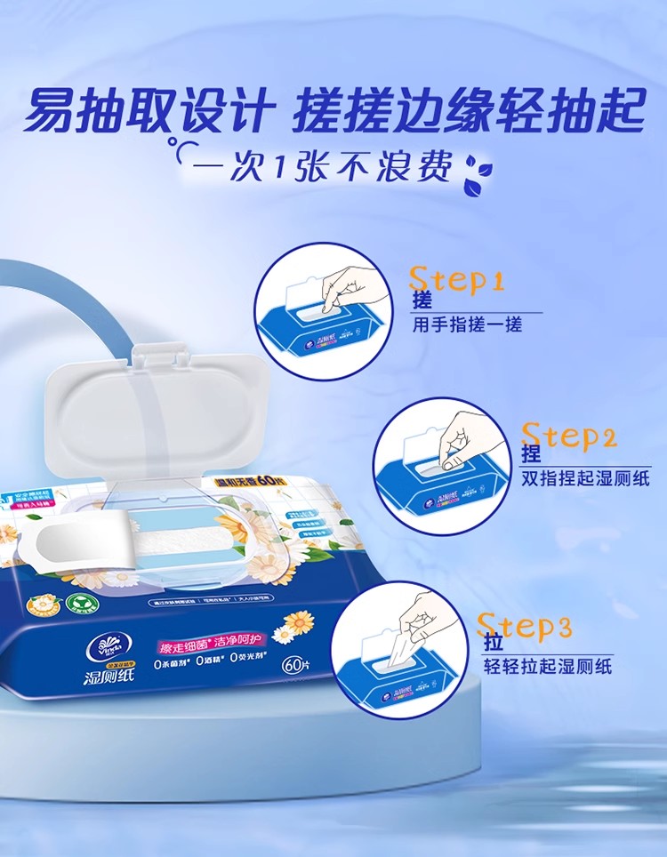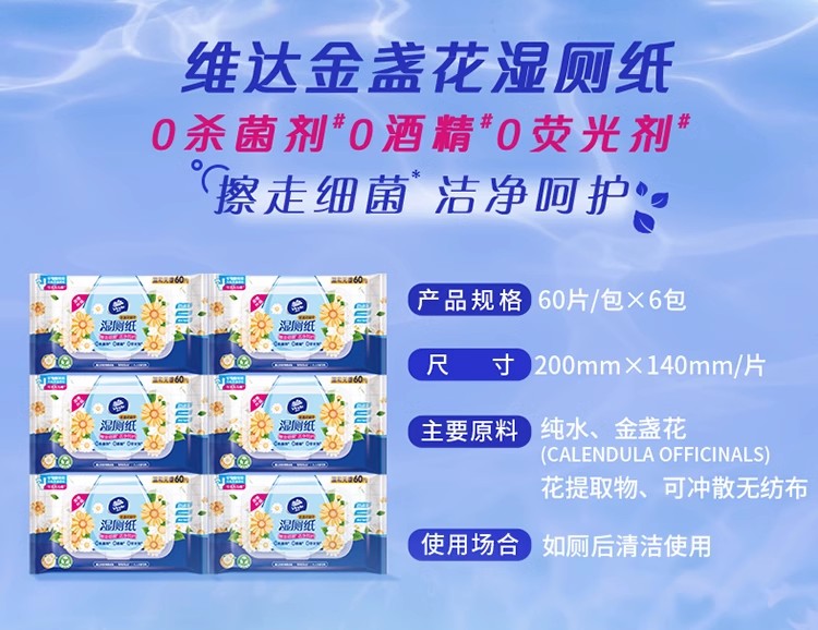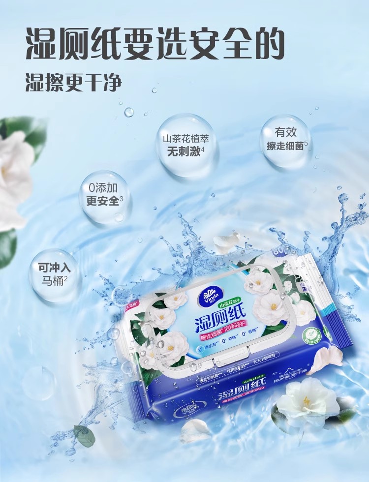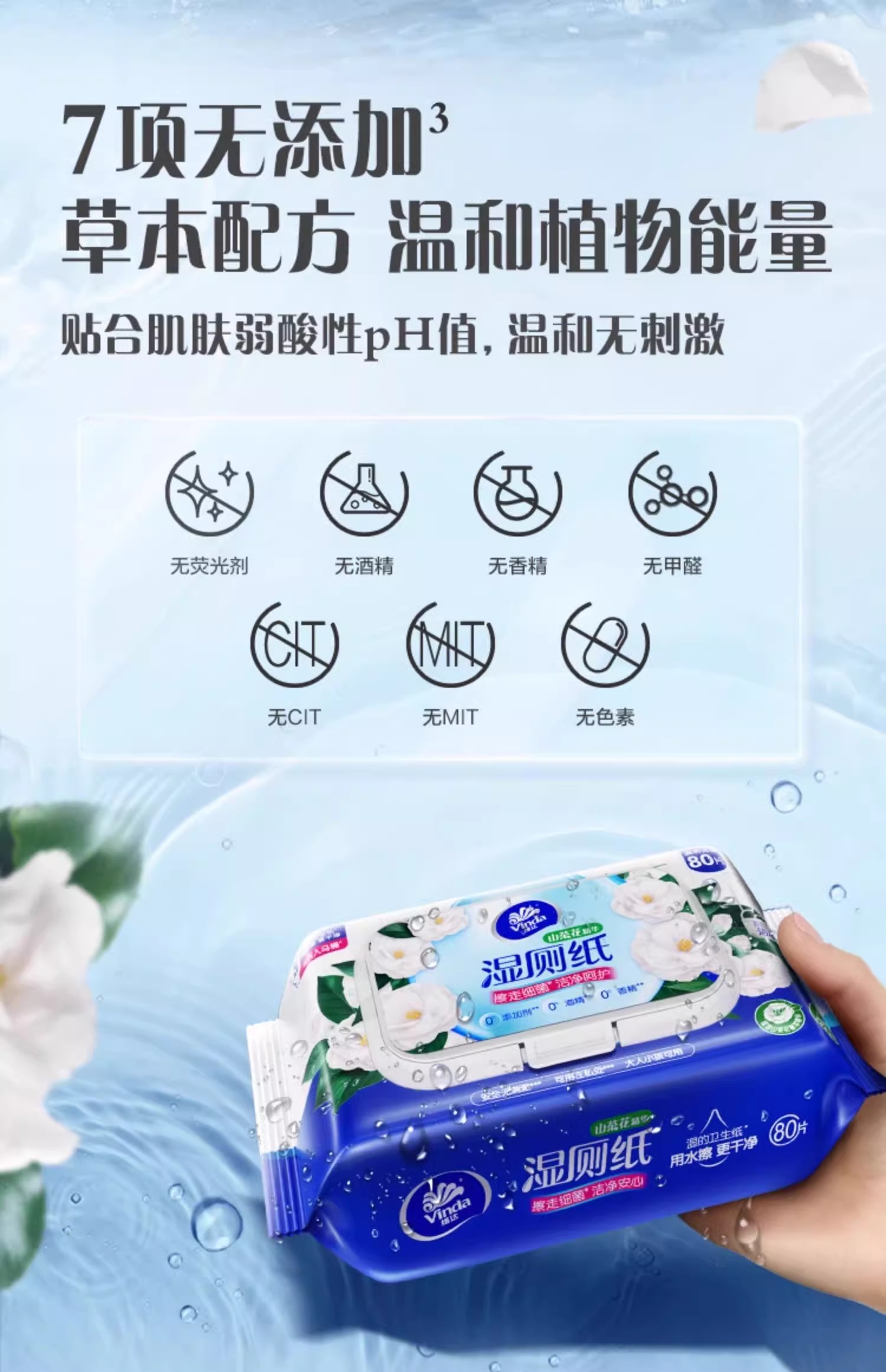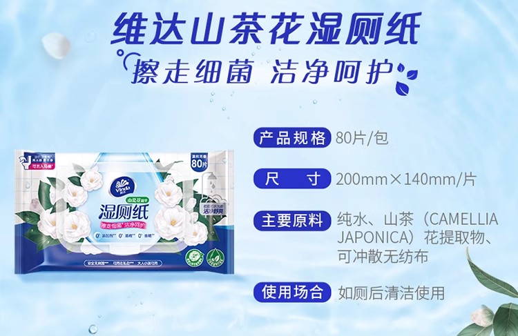 维达湿厕纸 湿巾家庭实惠装植萃山茶花80片1.37