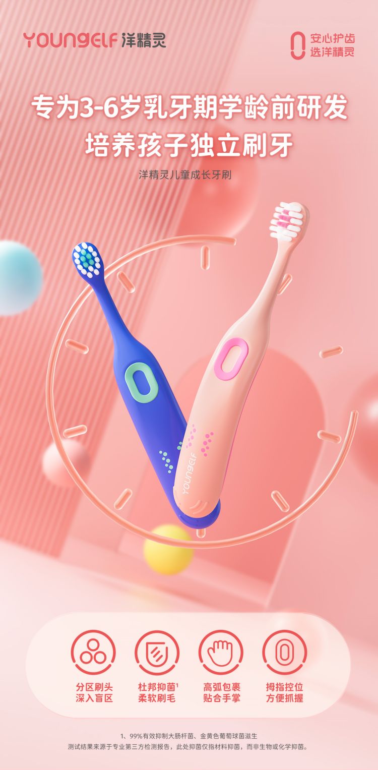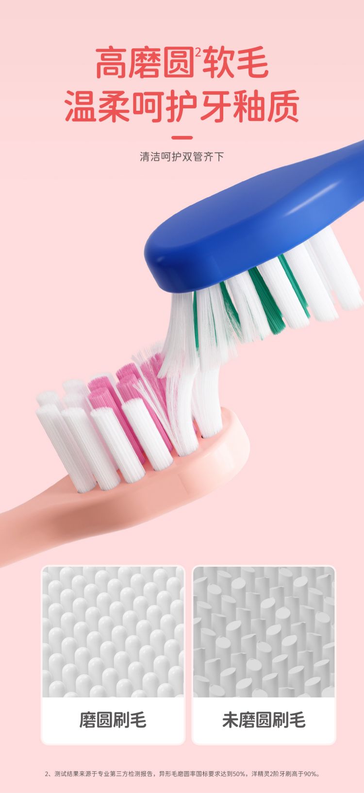 洋精灵2阶段乳牙期儿童成长牙刷—葡萄紫/西柚粉 3-6岁