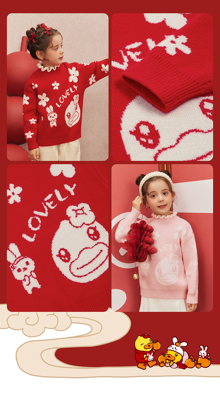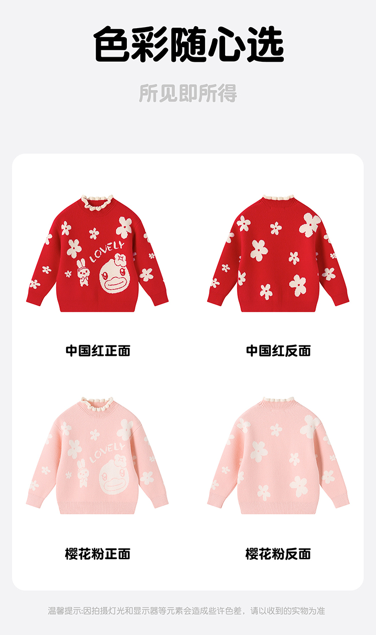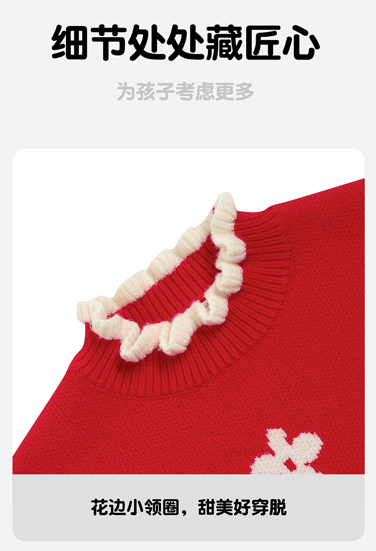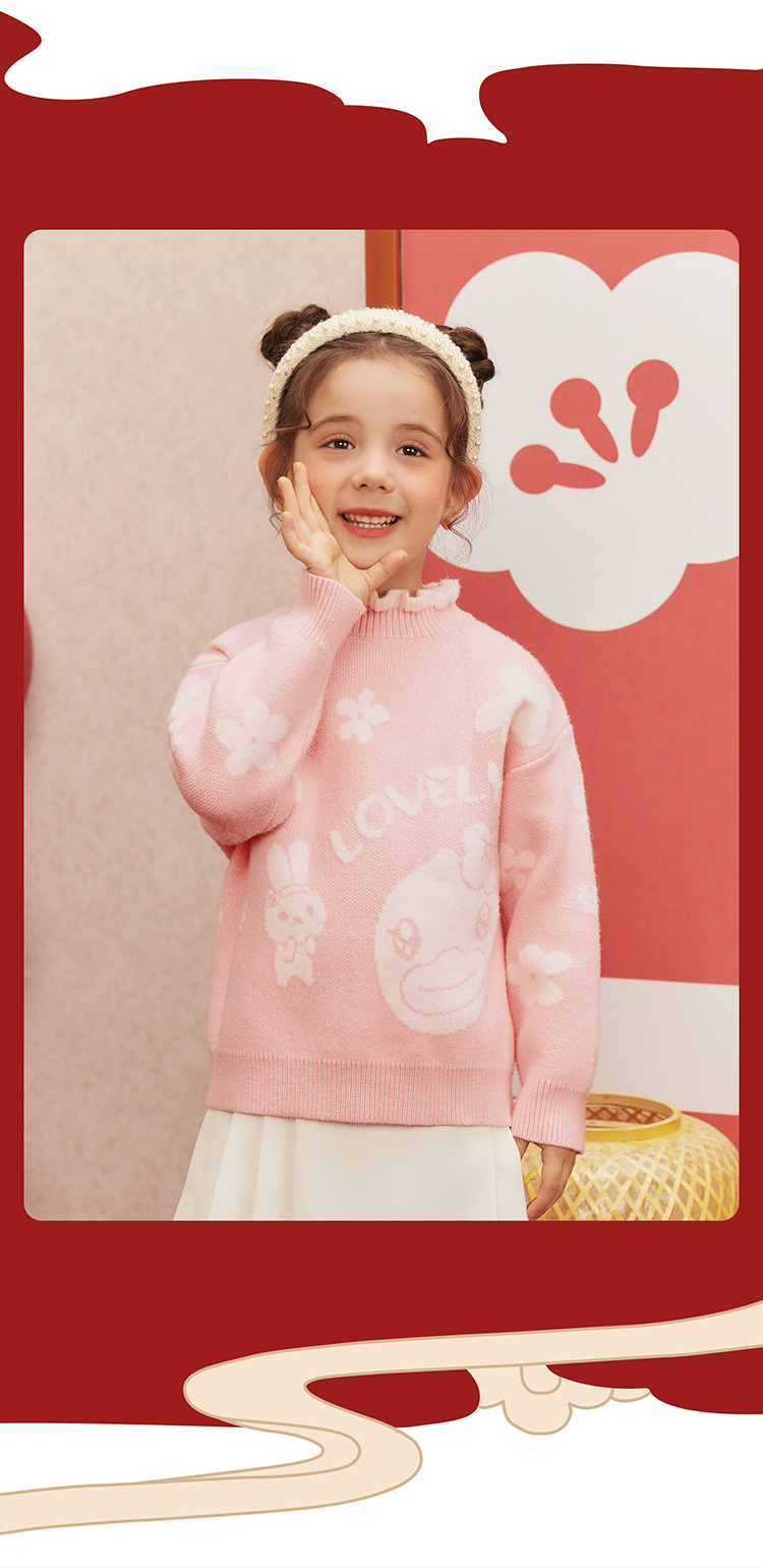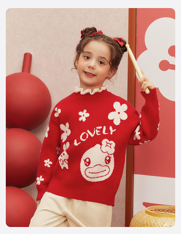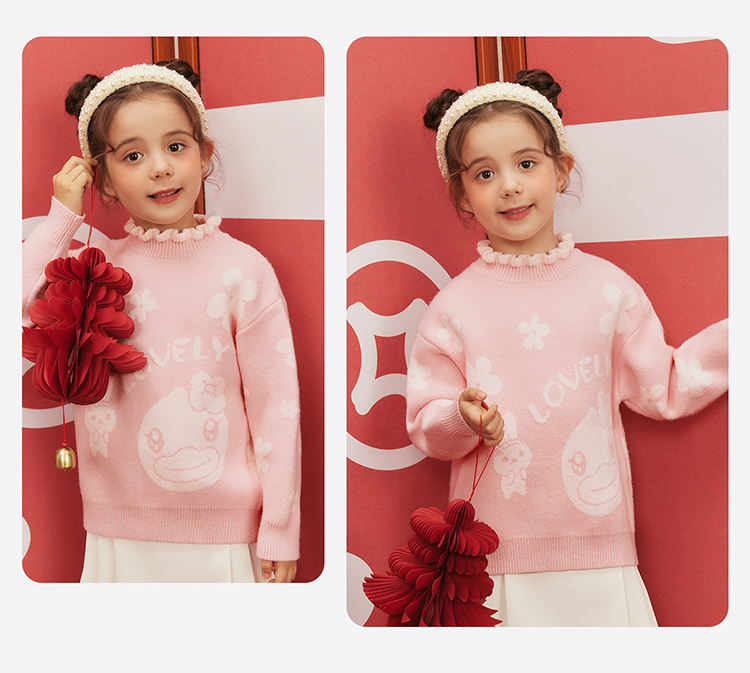 B.Duck小黄鸭童装花边圆领套头针织衫冬季女童毛衣105-150 FF5512905