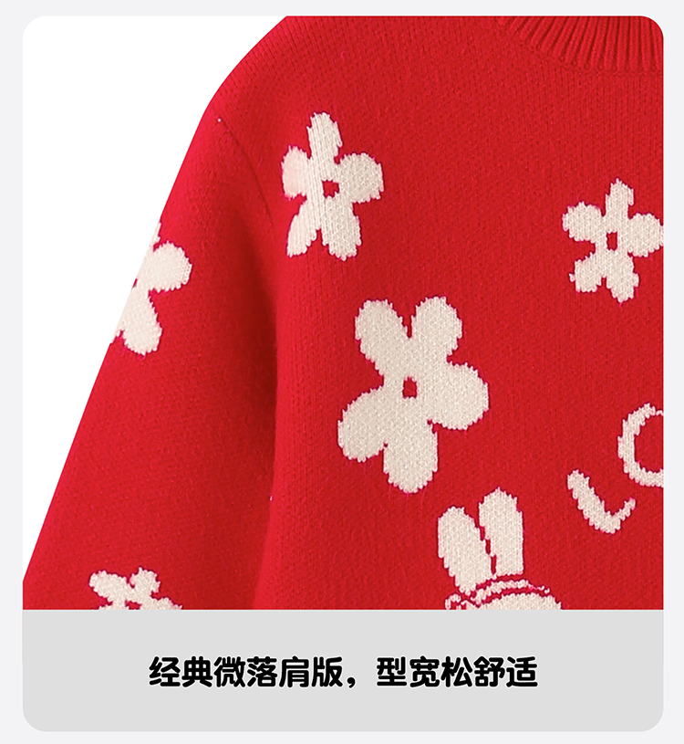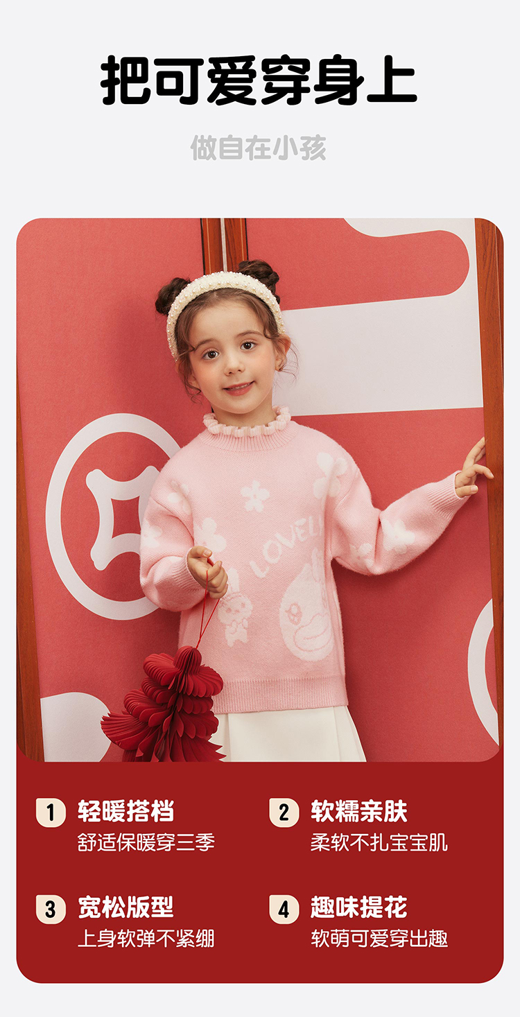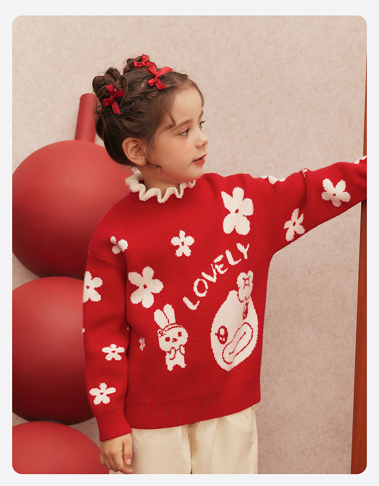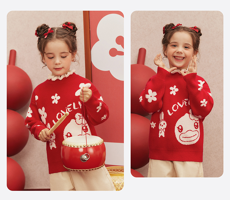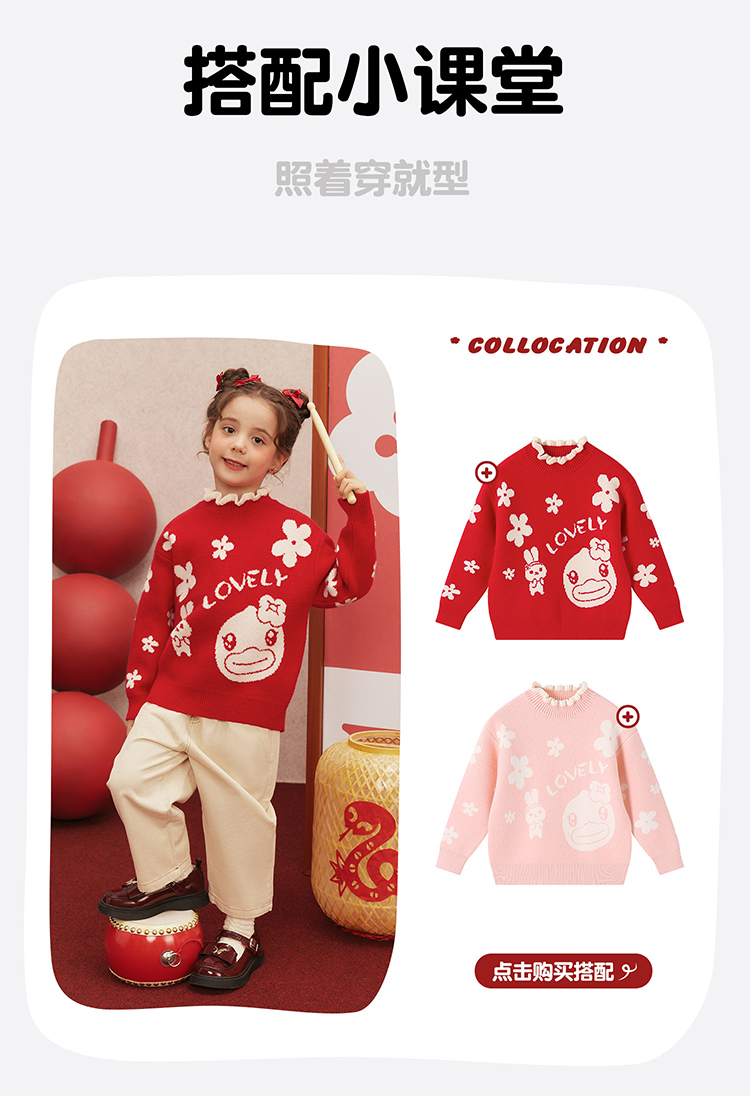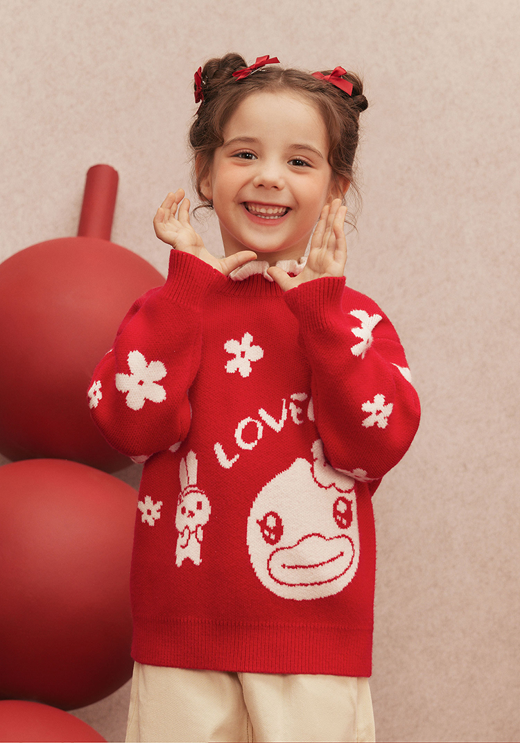 B.Duck小黄鸭童装花边圆领套头针织衫冬季女童毛衣105-150 FF5512905
