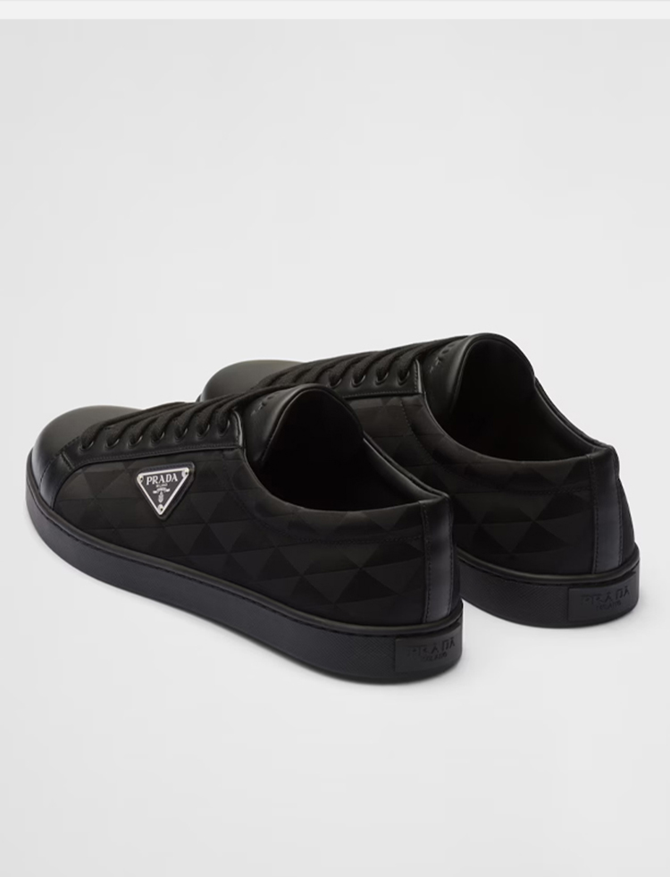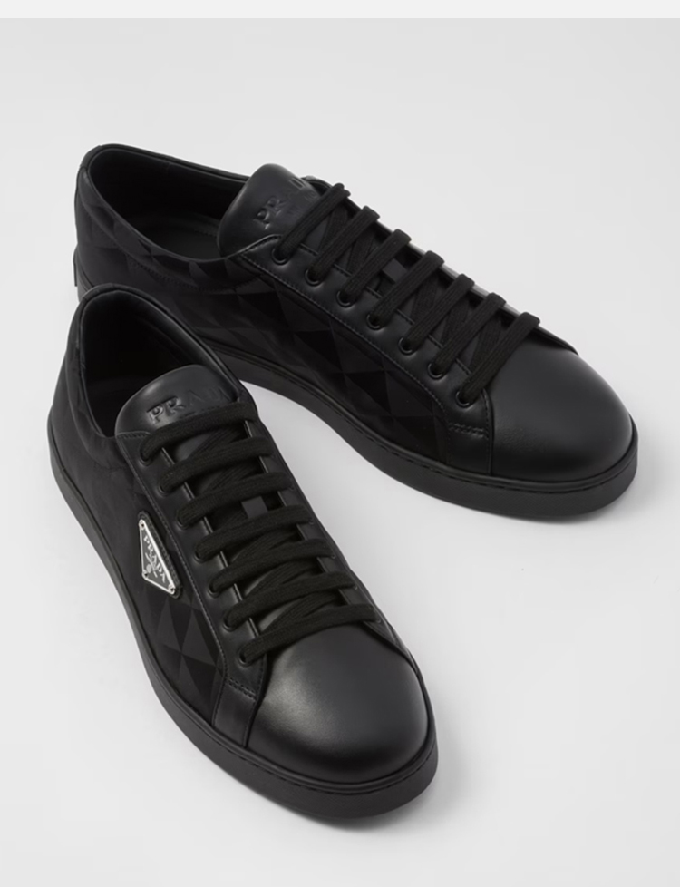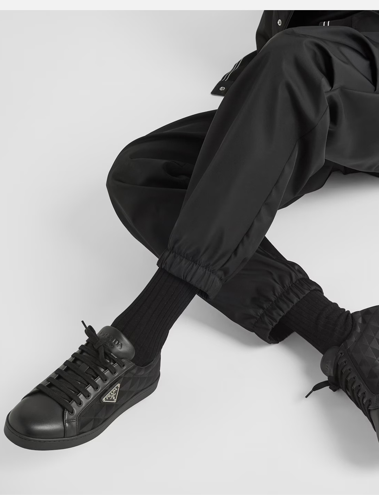 PRADA 普拉达 男士珐琅三角形徽标皮革休闲运动鞋 黑色 2EE376 3LNW F0002
