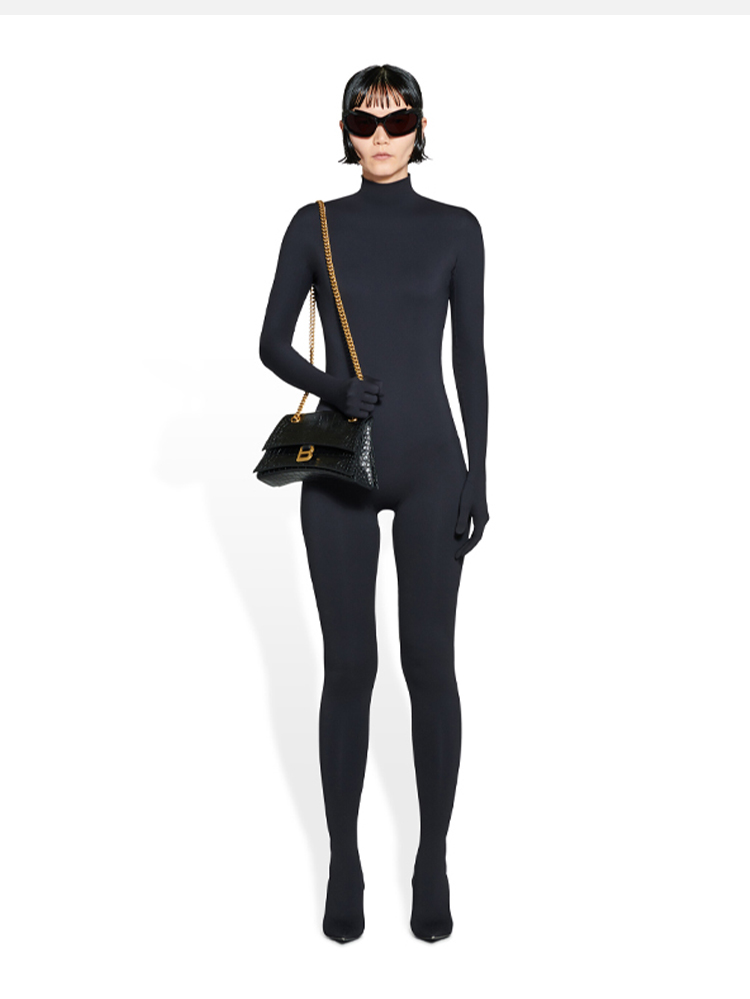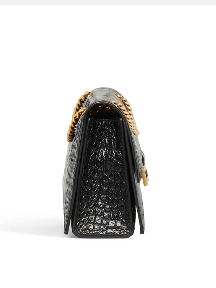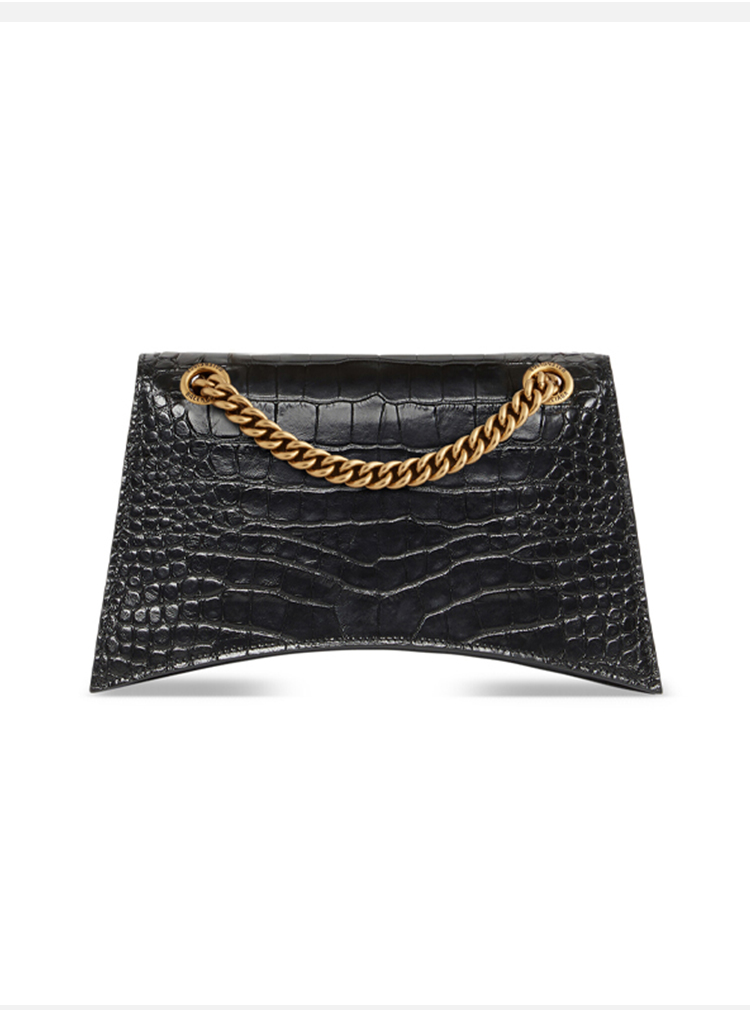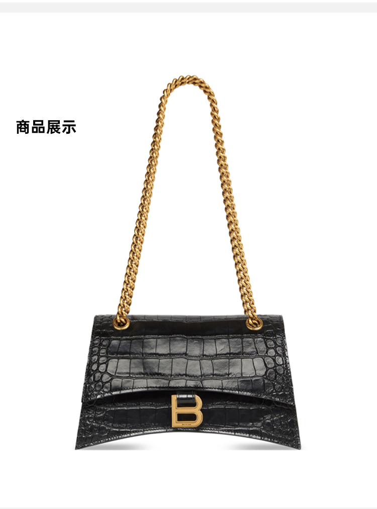 BALENCIAGA 巴黎世家 女士 Crush 小号柔韧鳄鱼纹压纹牛皮革链带单肩包 黑色 716351 210IX 1000