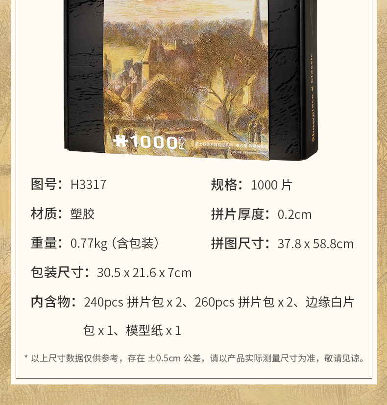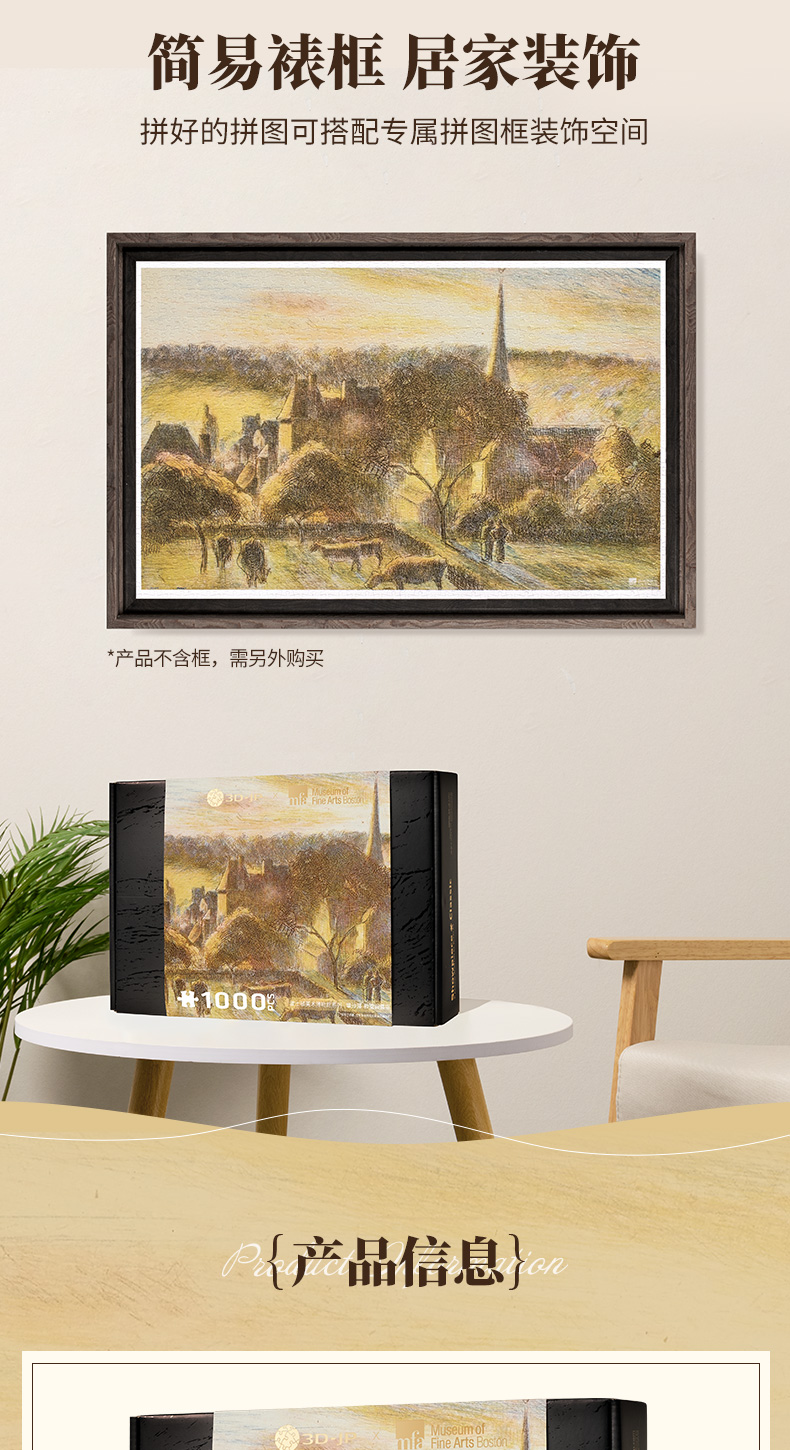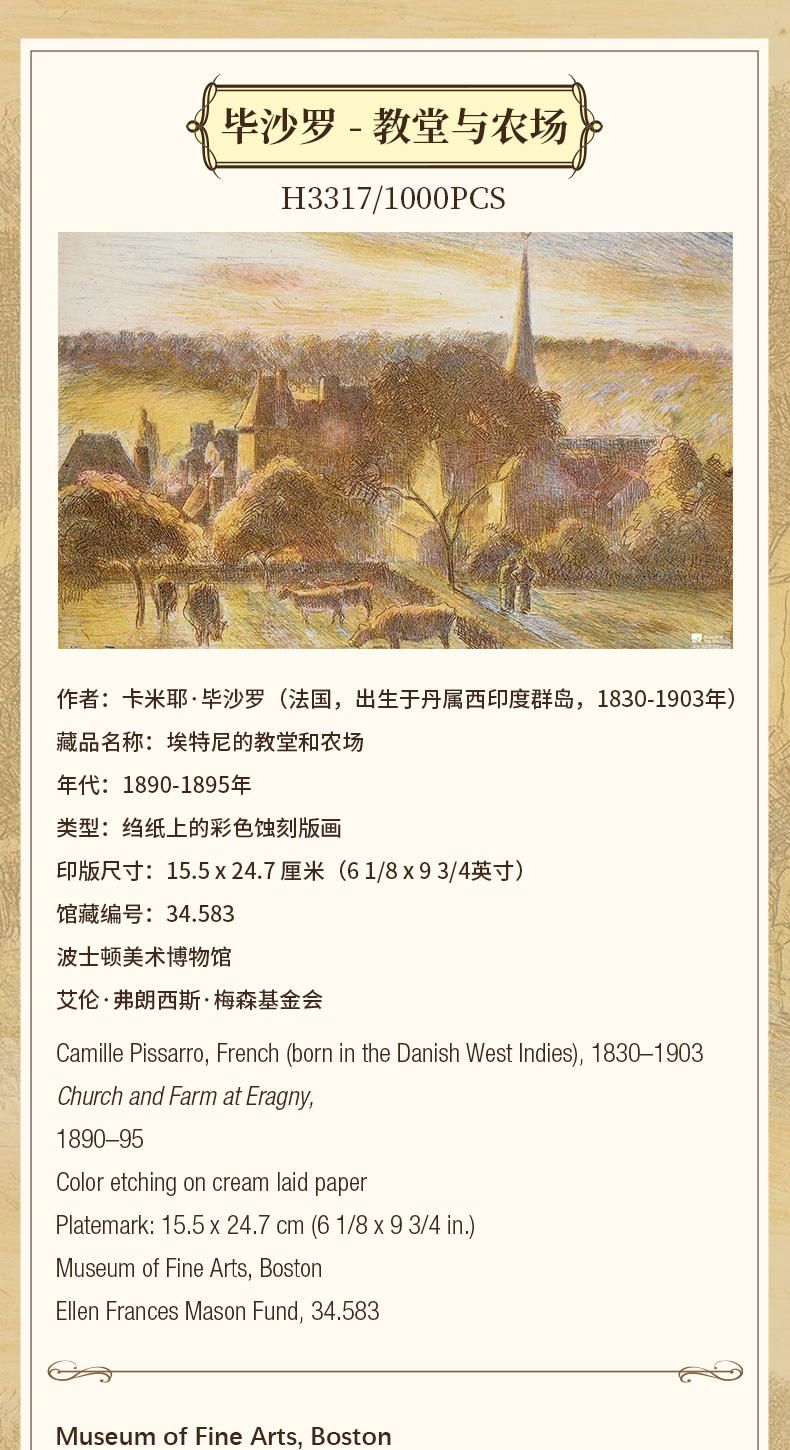 1000片 平面塑料拼图 H3317 波士顿美术博物馆系列-毕沙罗-教堂与农场