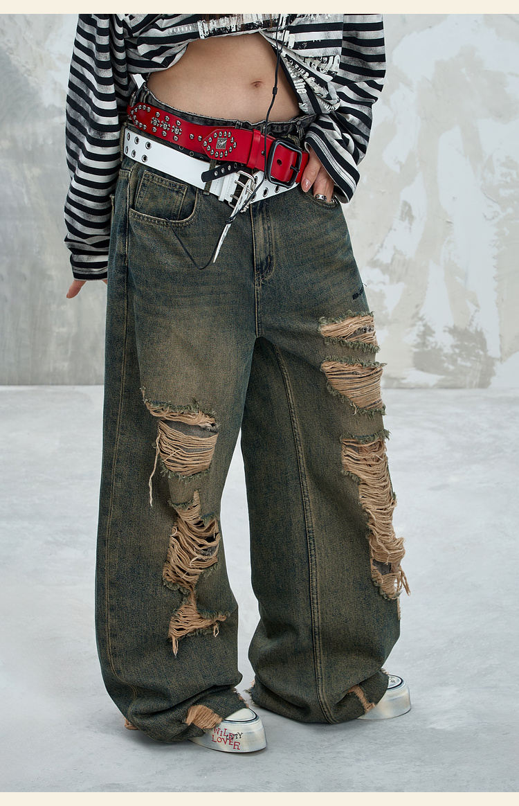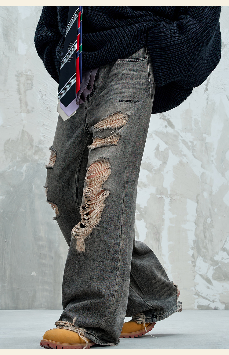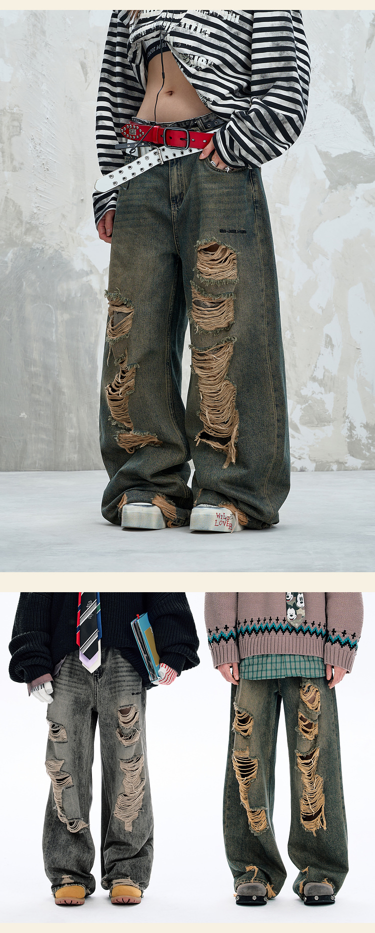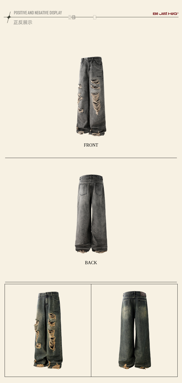 BJHG不计后果美式牛仔裤男款秋季2025新款休闲破洞潮流直筒长裤女